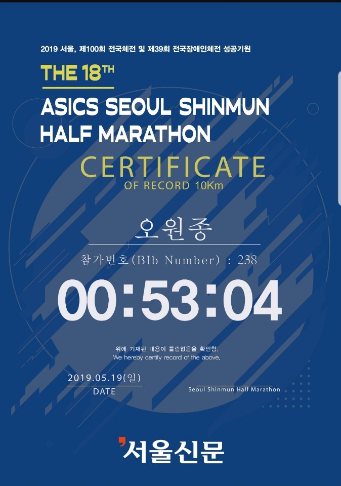 지난 5월 저는 마라톤 대회를 뛰고 왔어요.