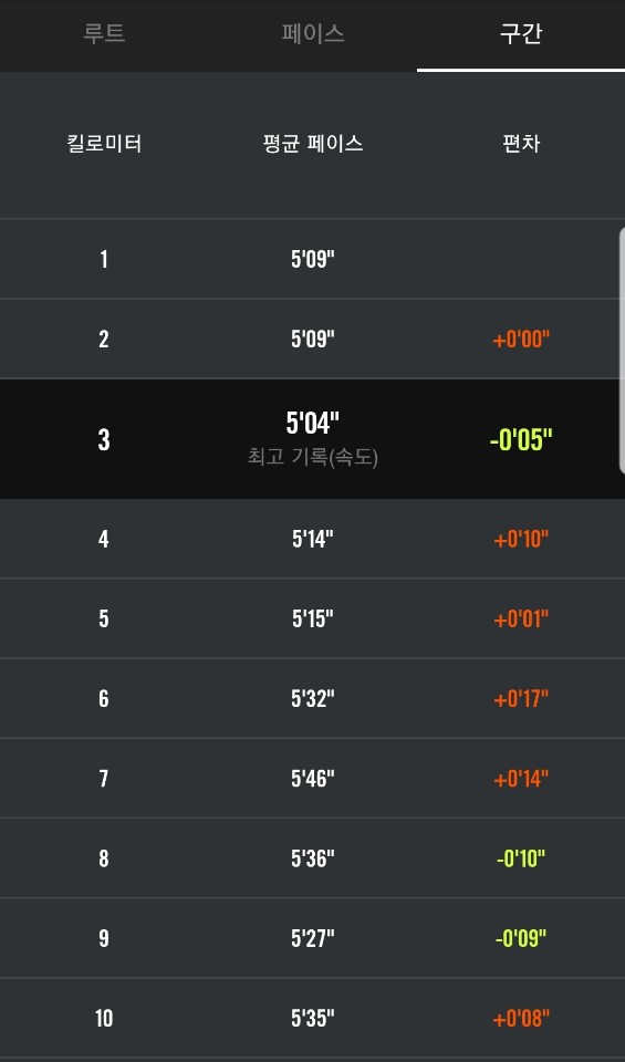 사실 목표는 sub 50 였어요. 그전까지 제가 가장 좋았던 기록은 53분 대 였었고(2015년 상병 휴가 나와서 뛴 마라톤), 지난 대회는 55분대로 들어왔어요(JTBC 마라톤). 앞자리 4를 너무 보고 싶어서 50분 이내를 목표로 잡았지만, 결과적으로 보면 그만큼 훈련을 열심히 하지 않았던 것 같기도 하네요 ㅠㅠ 초반에 조금 체력을 비축해서 중반 이후 체력이 떨어져도 5:15/km 페이스를 유지하자는 게 저의 전략이었습니다.(결국 실패했지만요 ㅠ)