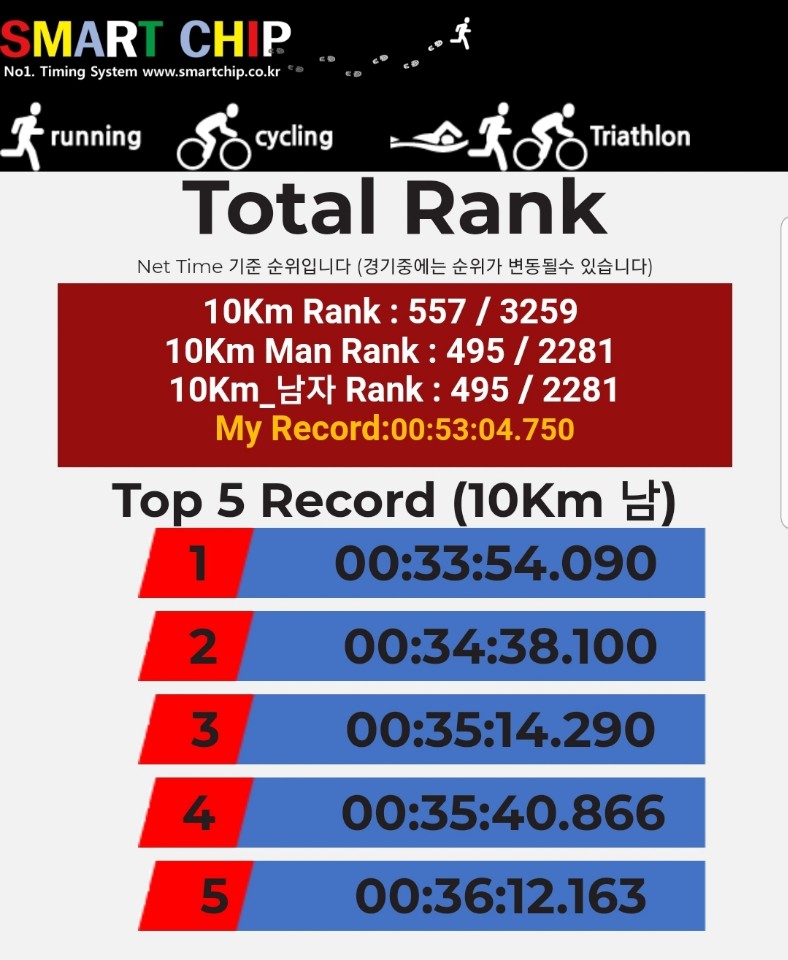 후반 페이스가 살짝 쳐졌고 레이스 앞부분에 속도를 좀 더 못 내서 그런지 목표했던 기록에는 다가가지 못했네요 ㅠㅠ 앞에 5km는 4:45/km 페이스 뒤에 5km는 5:15/km를 유지하면서 하반기 마라톤 때 10k를 한 번 더 뛰어야 할 것 같아요 ㅋㅋ 체지방을 좀 줄이고 체력을 보강해서 다음번에는 꼭 sub 50을 달성해 보려고 합니다.