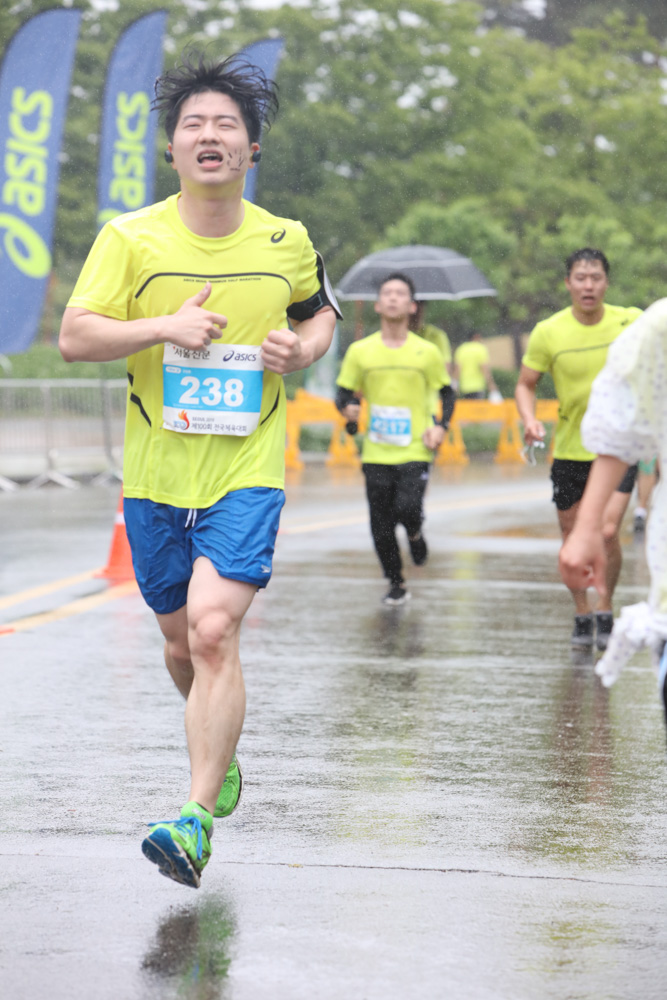 저는 어차피 땀 나서 젖든지, 비 맞아 젖든지 똑같은 거라고 생각을 해서 최대한 긍정적으로 생각하면서 몸을 풀었던 것 같아요. ㅋㅋ 비 오는 날에 마라톤을 뛰어보는 경험은 이 날이 처음이었던 것 같네요.