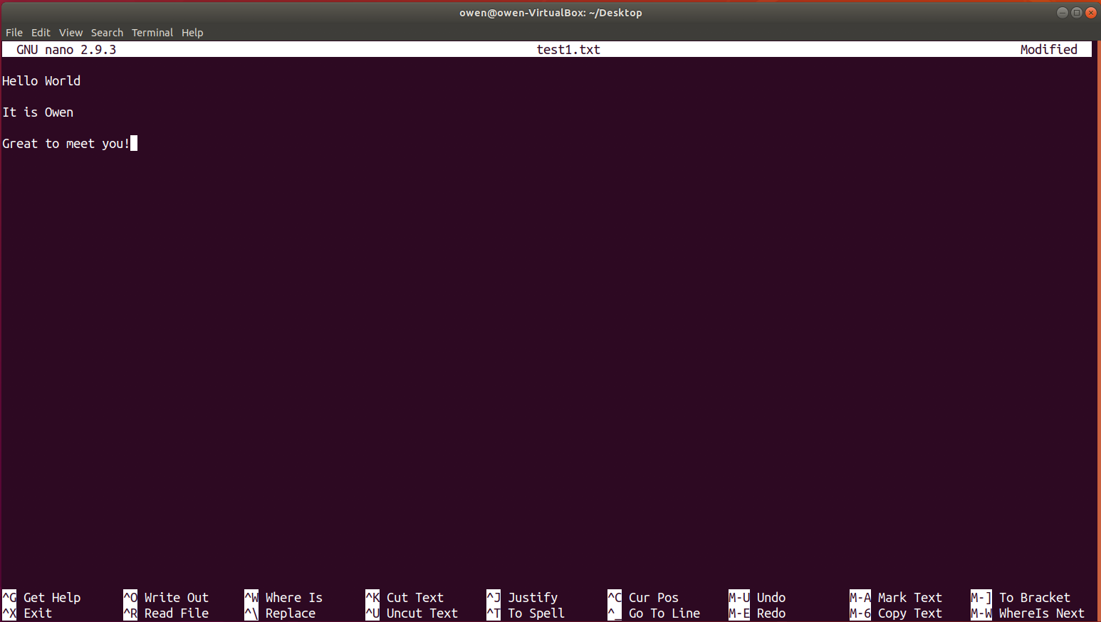 먼저 nano 입니다. 리눅스 환경에서 텍스트 파일을 다루어야 할 때가 굉장히 많은데, nano는 이럴 때 정말 유용하게 쓸 수 있는 에디터입니다. 커맨드에 nano 명령어 입력 후 파일명을 입력하면 다음과 같은 에디터가 나타나게 됩니다.