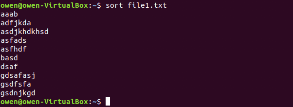 기본적으로 sort 파일명 을 입력하면 오름차순으로 정렬이 됩니다.