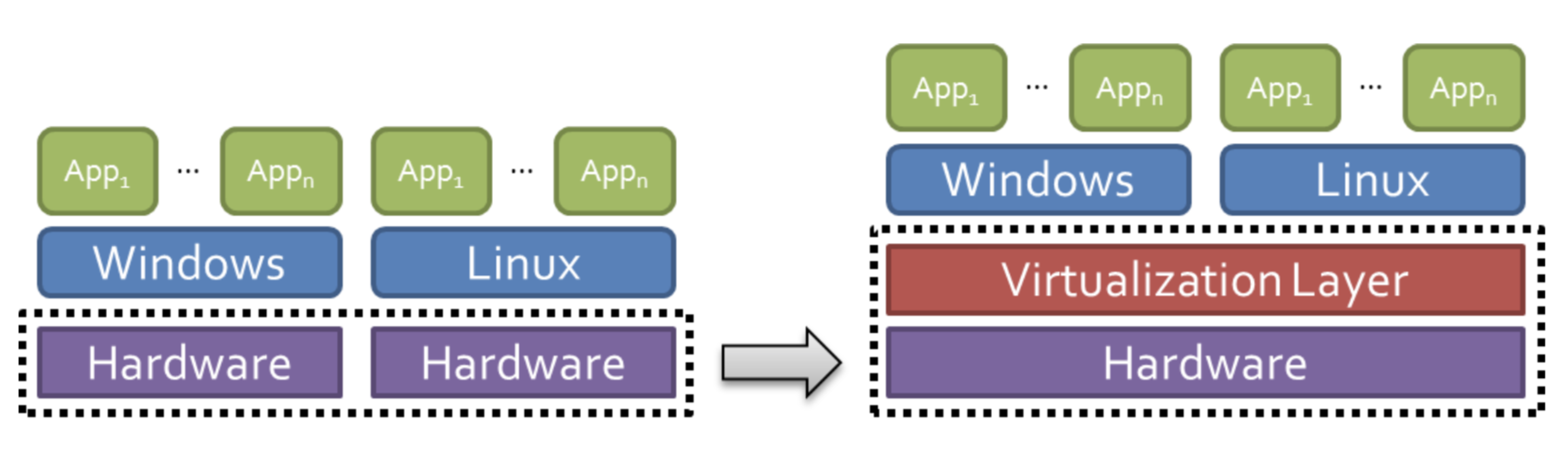 - 하드웨어와 OS가 1:1로 존재하는 구조를 바꿈