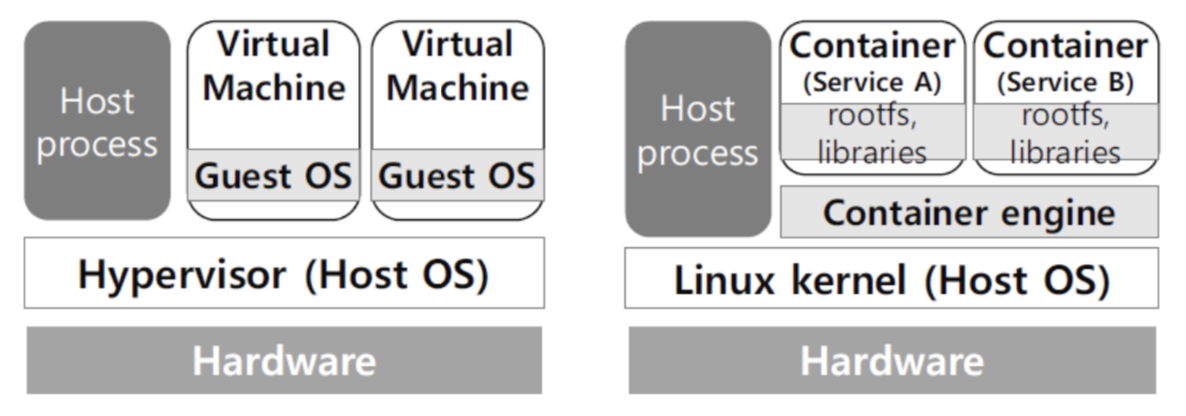 - 하나의 물리 컴퓨터에서 여러 종류의 게스트 OS 운용이 가능 -> 한 서버에서 다양한 서비스를 동시에 제공