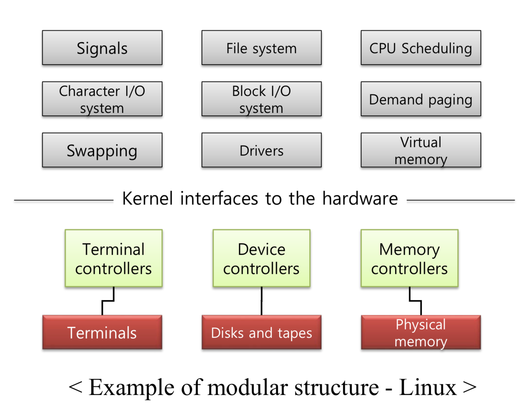 - 각 모듈이 유기적으로 연결되어 있기 때문에 커널 크기가 커질수록 유지보수가 어려움