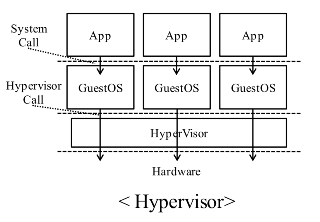 - 하이퍼바이저는 각 게스트 OS간의 CPU, 메모리 등 시스템 자원을 분배하는 등 최소한의 역할을 수행