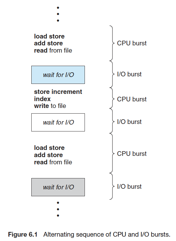 프로세스 수행 사이클은 일반적으로 CPU Burst와 I/O Burst가 번갈아 가면서 이루어진다.