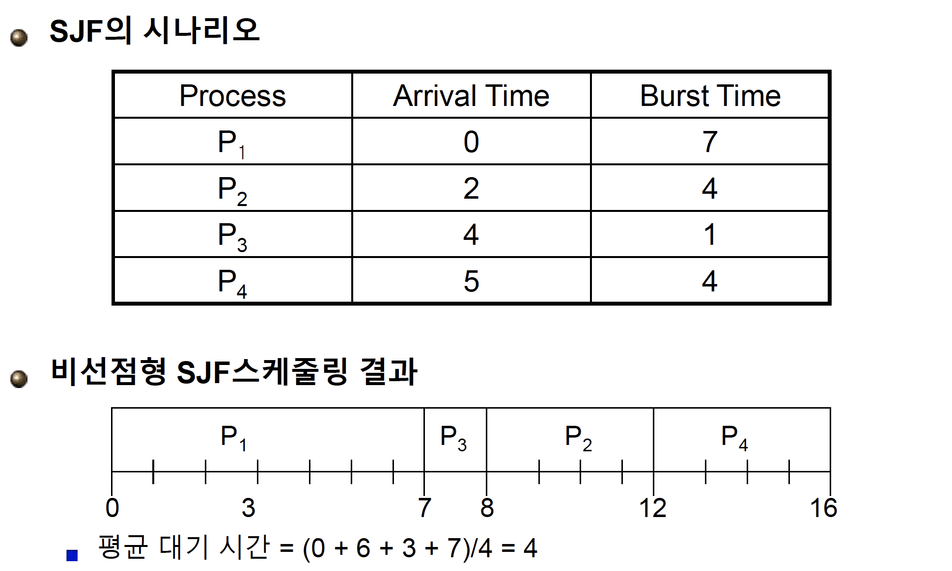 아래는 비선점형 스케줄링 방식의 SJFS이다.