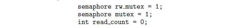 - semaphore rw_mutex : read_count와 WRITE의 접근이 원자적으로 수행됨을 보장하기 위한 세마포