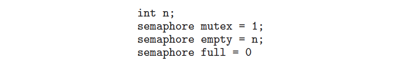 위의 Bounded-buffer 도식에서 우리가 주목해야 할 점은 생산자가 Write 하는 동안 다른 생산자는 Write 할 수 없고 어떤 소비자도 Read 할 수 없다는 점이다. 이 문제를 구현하기 위해서는 1차원 배열 Boolean Buffer[n] 으로 선언해서 각각의 배열값을 empty로 초기화 하고, 생산자가 empty인 index를 찾아 full로 바꾸는 방법을 생각해 볼 수 있다. 이 때 중복해서 Write가 선언되지 않게 하기 위해서 mutex 를 이용한 세마포를 생각해 볼 수도 있다.