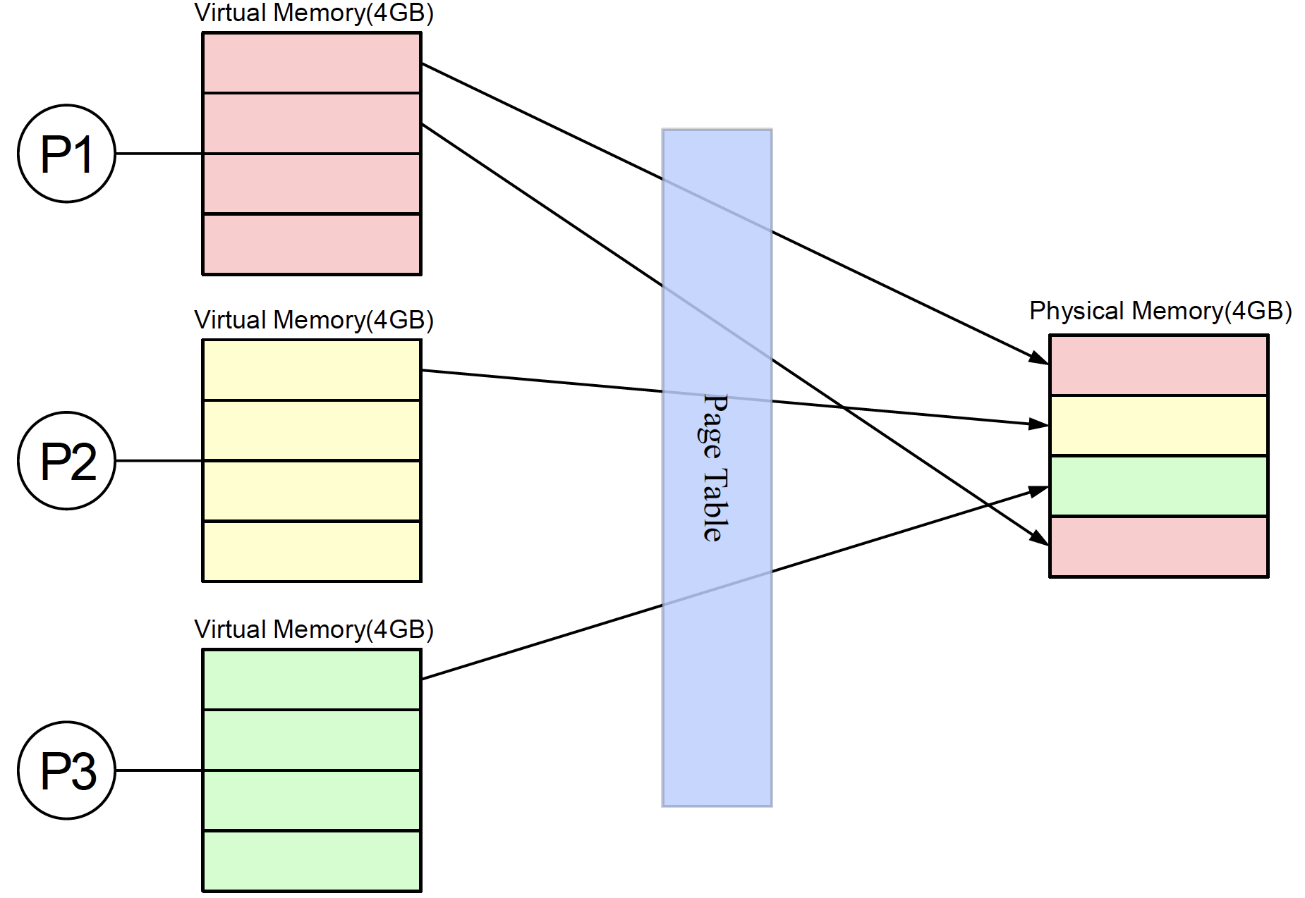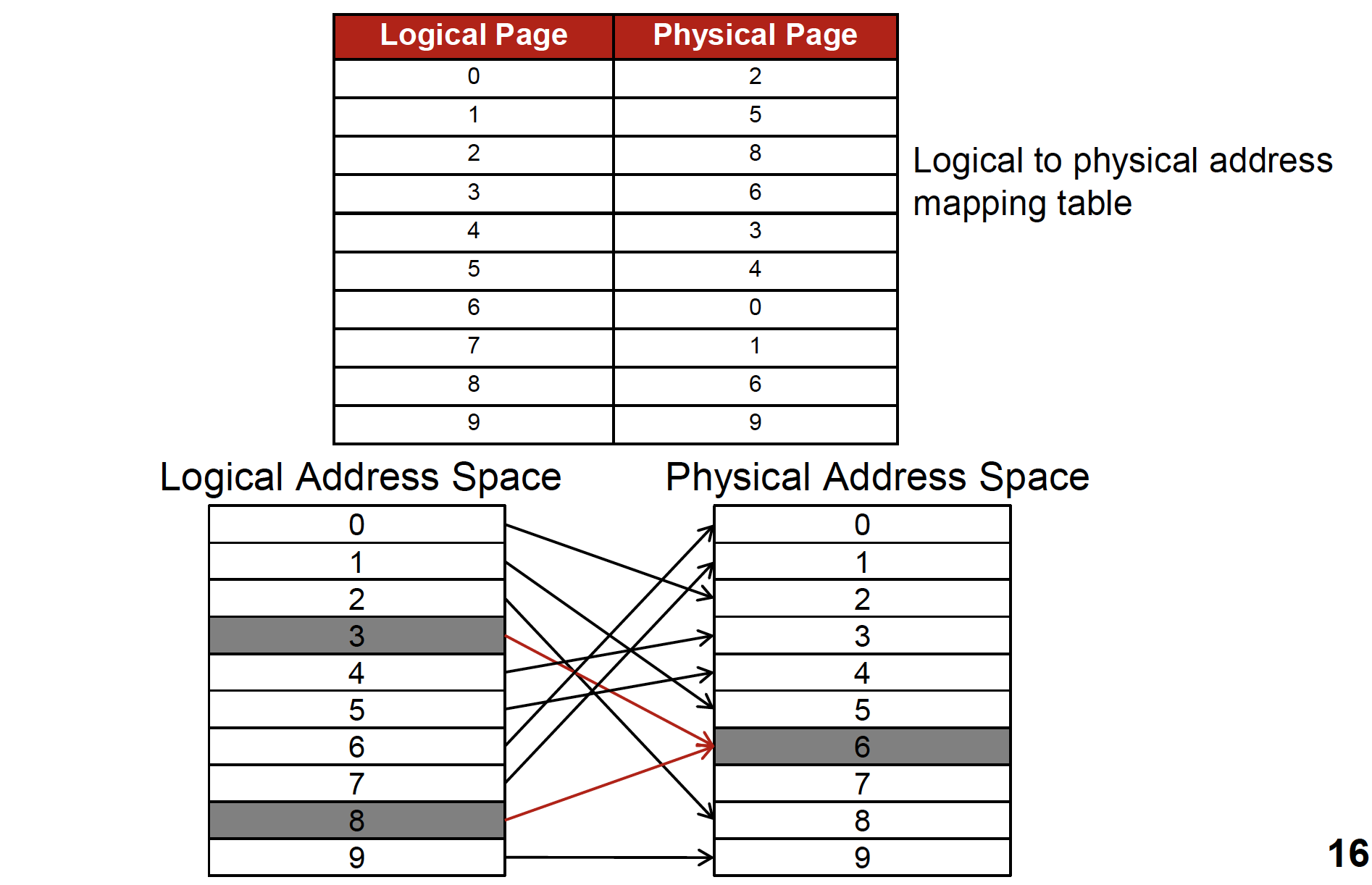 메모리를 관리할 때는 논리 주소와 물리 주소를 매핑하는 매핑 테이블을 작성하여 관리를 한다. 가상 메모리 시스템에서 가상 주소는 실제로 물리 주소나 스왑 영역 중 한 곳에 위치하며, 메모리 관리자는 가상 주소와 물리 주소를 일대일 매핑 테이블로 관리한다.