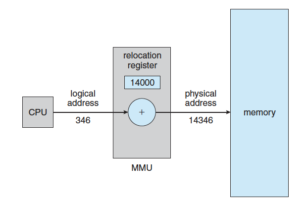 로더 타임(link time)에서는 프로그램의 실행을 위해 loader는 executable을 메모리로 로드한다. 주소 공간 전체가 메모리에 올라간다면, 로드 시에 물리 주소에 대한 바인딩이 일어난다. 프로그램은 relocatable 주소로 되어 있기 때문에 base register를 통해서 물리 주소로 바꾸어 실행하게 된다. 만일 프로그램의 시작 주소를 바꾸려면, 다시 로드를 해야 한다. 실행 타임(execution time)은 프로세스가 실행될 때 물리 주소가 바뀌는 경우, 물리 주소에 대한 binding은 프로세스가 실행될 때 일어난다. 페이징이나 스와핑을 통해서 프로세스가 올려지는 메모리의 물리 주소는 바뀔 수 있다. 이러한 형태의 주소 결정 방법을 사용하기 위해서 MMU와 같은 특별한 하드웨어가 필요하게 된다.