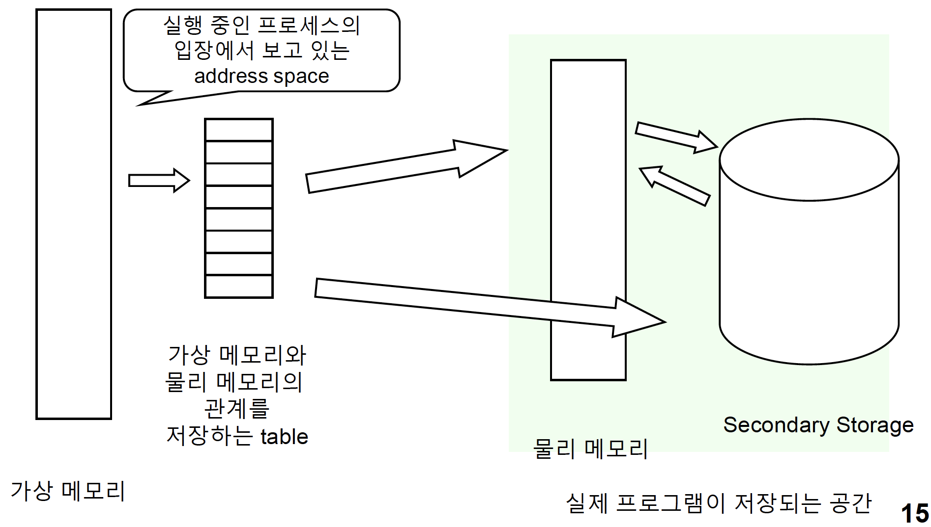 메모리를 관리할 때는 논리 주소와 물리 주소를 매핑하는 매핑 테이블을 작성하여 관리를 한다. 가상 메모리 시스템에서 가상 주소는 실제로 물리 주소나 스왑 영역 중 한 곳에 위치하며, 메모리 관리자는 가상 주소와 물리 주소를 일대일 매핑 테이블로 관리한다.