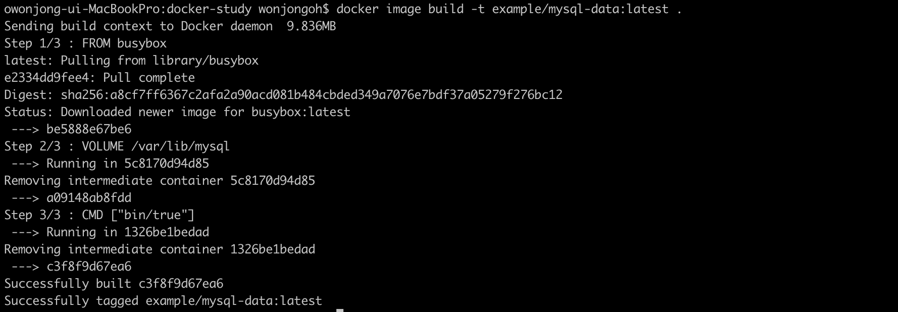 데이터 볼륨을 생성하려면 다음과 같이 docker container run 명령에 -v 옵션을 사용하면 된다.