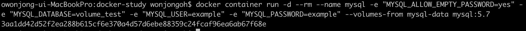 데이터 볼륨 컨테이너를 실행한다.
