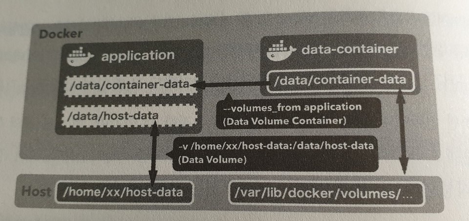 호스트-컨테이너 데이터 볼륨은 호스트 쪽 특정 디렉터리에 의존성을 갖는다. 데이터 볼륨 컨테이너의 볼륨은 도커에서 관리하는 영역인 호스트 머신의 /var/lib/docker/volumes/ 아래에 위치한다. 데이터 볼륨 컨테이너 방식은 도커가 관리하는 디렉터리에만 영향을 미친다. 호스트-컨테이너 데이터 볼륨과 비교하면 호스트 머신이 컨테이너에 미치는 영향을 최소한으로 억제한다. 또 데이터 볼륨 컨테이너가 직접 볼륨을 다뤄주므로 볼륨을 필요로 하는 컨테이너가 사용할 호스트 디렉터리를 알 필요가 없고, 디렉터리를 제공하는 데이터 볼륨 컨테이너만 지정하면 된다.