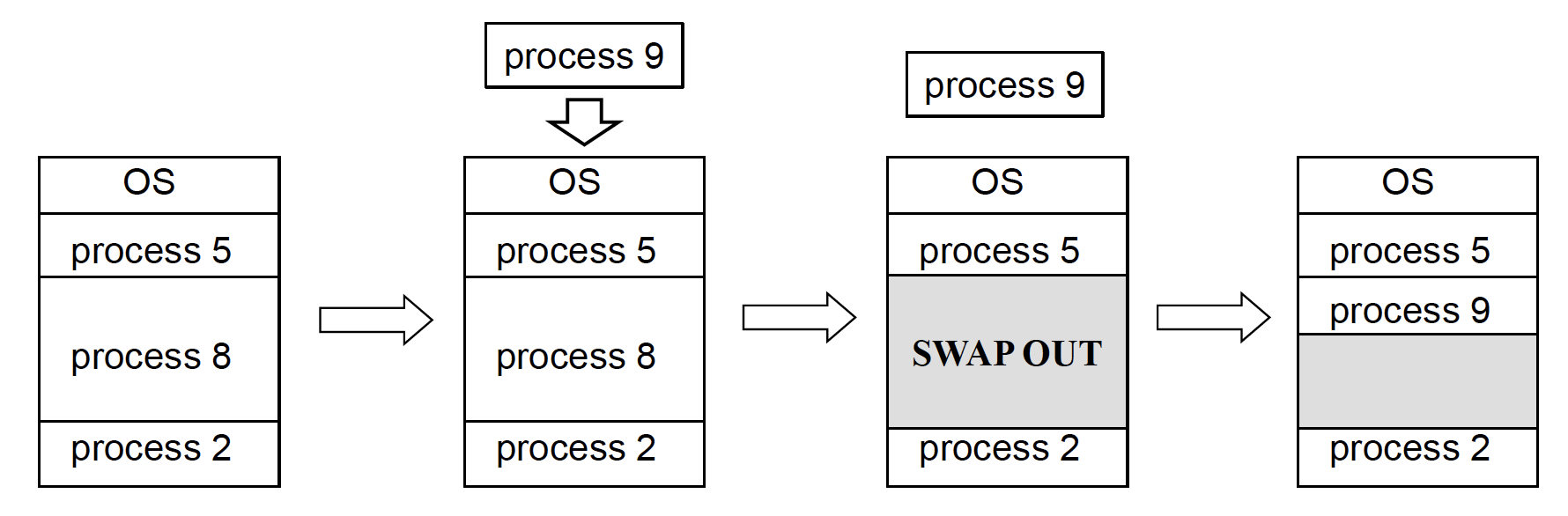 스와핑은 페이지 아웃으로도 메모리 부족을 해결하지 못할 경우에 필요한 기법이다. Swap out 대상이 된 프로세스 전체를 2차 저장소로 보낸다. 이렇게 페이지 아웃이나 스와핑에 사용되는 2차 저장소(secondary storage, backing store)를 swap 영역이라고 한다.