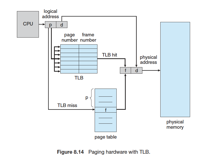 페이징 방법에서 데이터로의 접근이 항상 두 번의 메모리 접근을 거쳐야 한다. 페이지 테이블에서 한 번, 물리 메모리 내에서 한 번. 이는 메모리 접근 속도를 크게 떨어트린다. 이를 해결하기 위한 방법이 Transition Look-aside Buffer(TLB)이다. 페이지 테이블을 이용해 변환된 주소를 TLB에 저장해 두면, 다음 접근 시 TLB에 저장된 값을 이용하여 빠르게 변환된 주소를 얻을 수 있다.