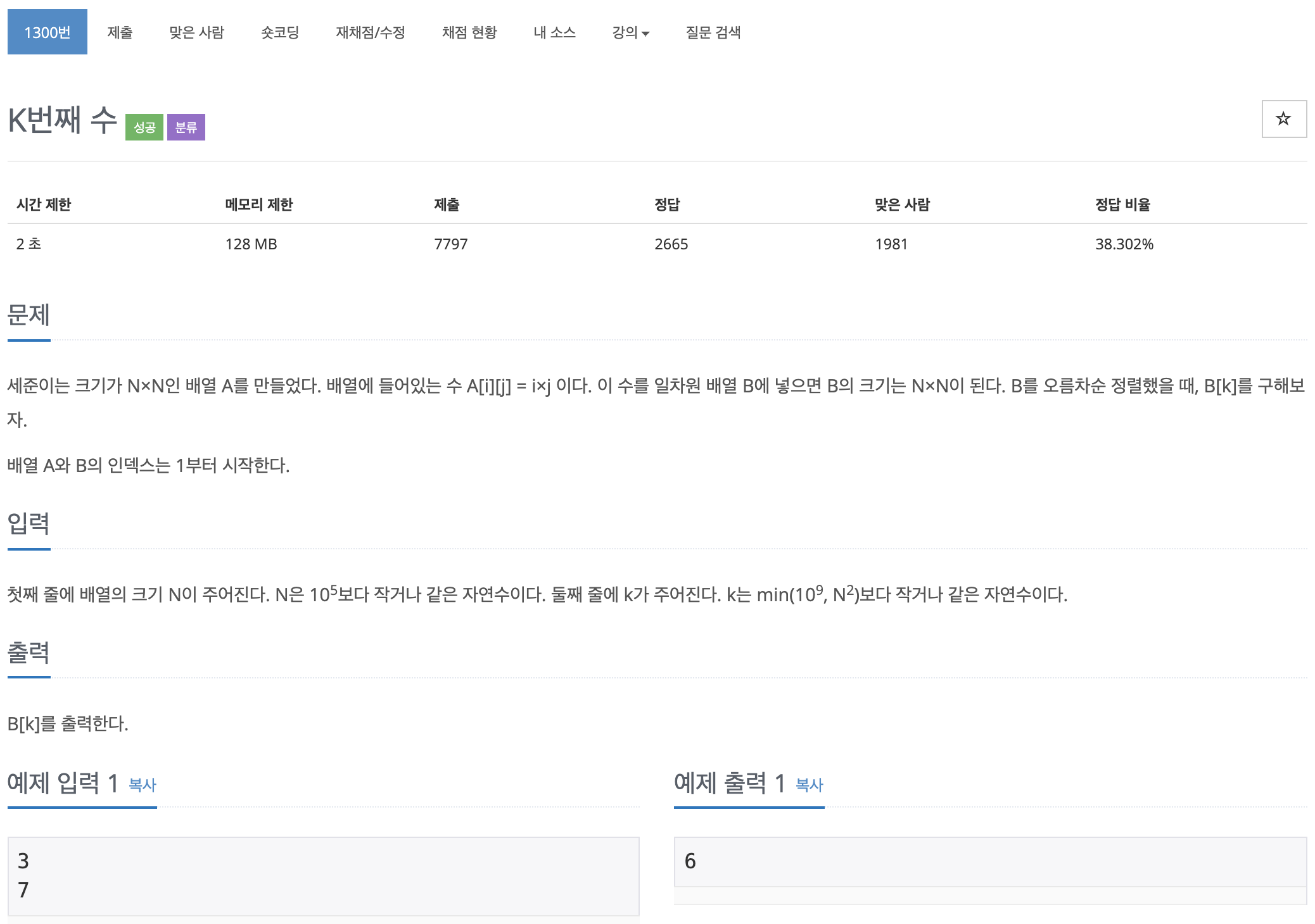 백준 1300 / 이분 탐색 (Binary Search) / JAVA
