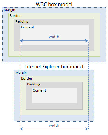 box model은 각각의 Object를 박스 형태로 나타내어 브라우저에 배치하기 위한 규칙이다. W3C 박스 모델과 IE 박스 모델이 있는데 두 가지 박스 모델은 차이가 있다. W3C 박스 모델은 content-box로 width가 content만 포함하는 반면, IE 박스 모델은 border-box로 width에 content, padding, border를 모두 포함한다.