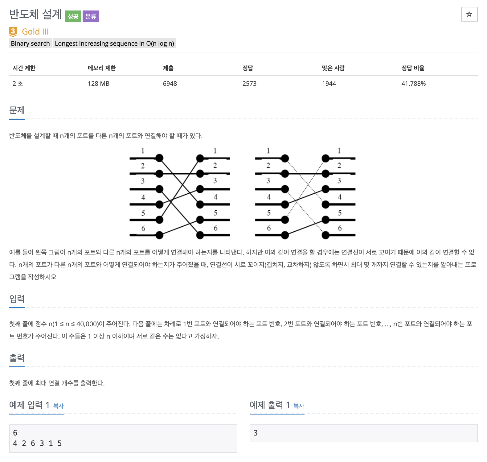 오늘은 백준 2352번 '반도체 설계' 문제를 보려고 한다.