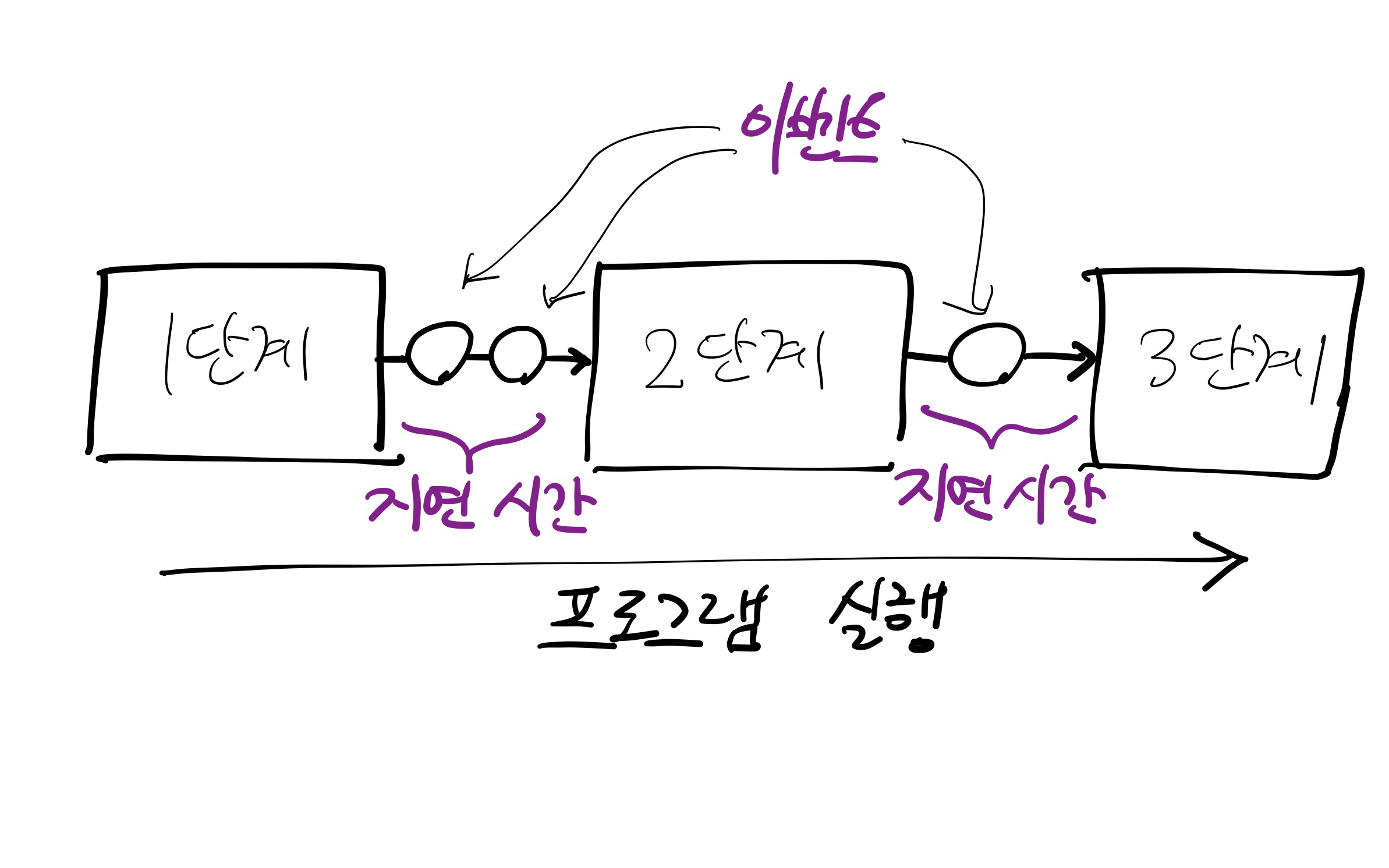 동기 코드와 비동기 코드의 차이는 지연시간(latency)이 있는지 없는지의 차이가 가장 큰 차이점이 아닐까 싶다. 일반적으로 비동기적인 코드보다 동기적인 코드가 이해하기가 더 수월하다. 하지만 우리가 개발하는 어플리케이션에서는 메시지를 보내고 응답이 올 때 까지 시간이 걸리고 이 시간들이 쌓이는 동안 아무것도 하지 않으면 어플리케이션이 정상적으로 돌아가지 못하는 수준까지 가는 경우도 있다. 기존의 이러한 방식에서 벗어나 복잡성이 증가한 어플리케이션에서 유휴 상태가 없이 사용자의 시간을 아낄 수 있게 하기 위해서는 비동기적인 처리가 불가피하다.