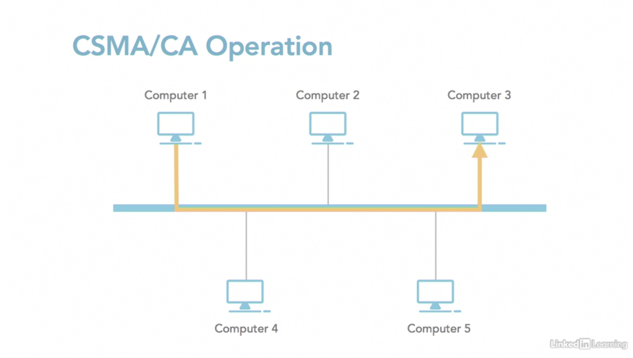 주로 이더넷에 사용된다. 노드는 네트워크 트래픽을 감지한다. 만약 트래픽이 감지되지 않으면 노드는 네트워크에 패킷을 보낸다. 두 노드가 패킷을 동시에 보내게 되면 충돌이 발생한다. 충돌이 일어나면 두 패킷에 담긴 모든 데이터에 손상이 일어난다. 충돌이 안 일어나면 전송이 성공적으로 일어난다. 만약 충돌이 일어나면 모든 노드는 내부 시계를 랜덤한 시각으로 맞추고 각각의 시간이 지나면 다시 새로운 전송을 보낸다.
