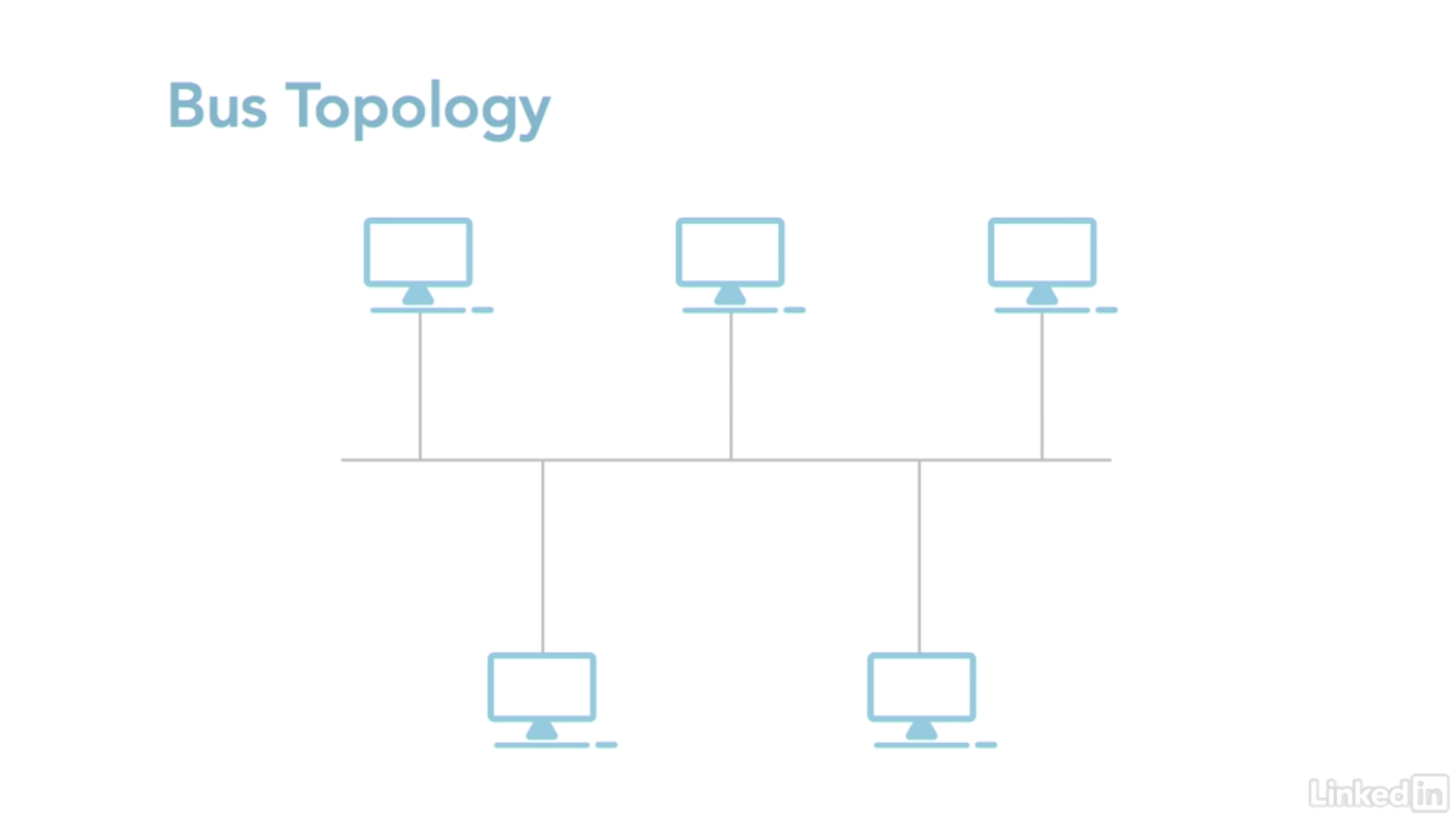 버스 토폴로지는 모든 노드가 버스로 불리는 메인 케이블에 연결되어 있다. 한 번에 하나의 노드만 신호를 보낼 수 있다. 어떤 노드가 신호를 보냈는지를 결정해야 하는데 이 때 Contention(투쟁)이 사용된다. 신호와 관련 있는 장치들만이 주목하고, 그 외의 장치들은 그 신호를 무시한다. 즉, 본래의 신호에 코드화되어 있는 주소와 일치하는 주소를 가진 컴퓨터만 반응한다.