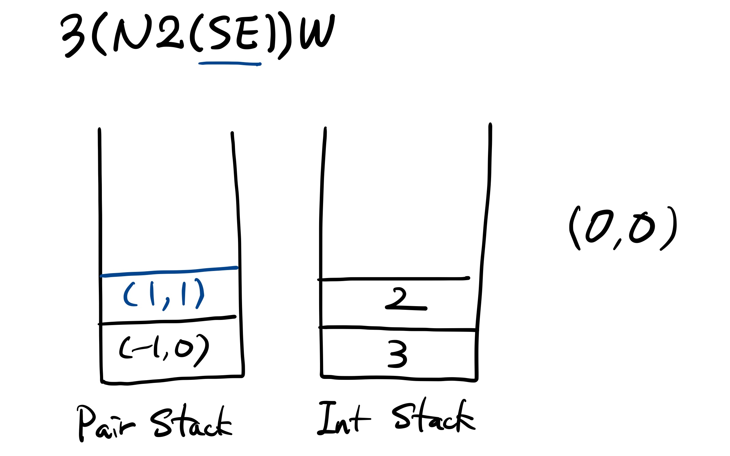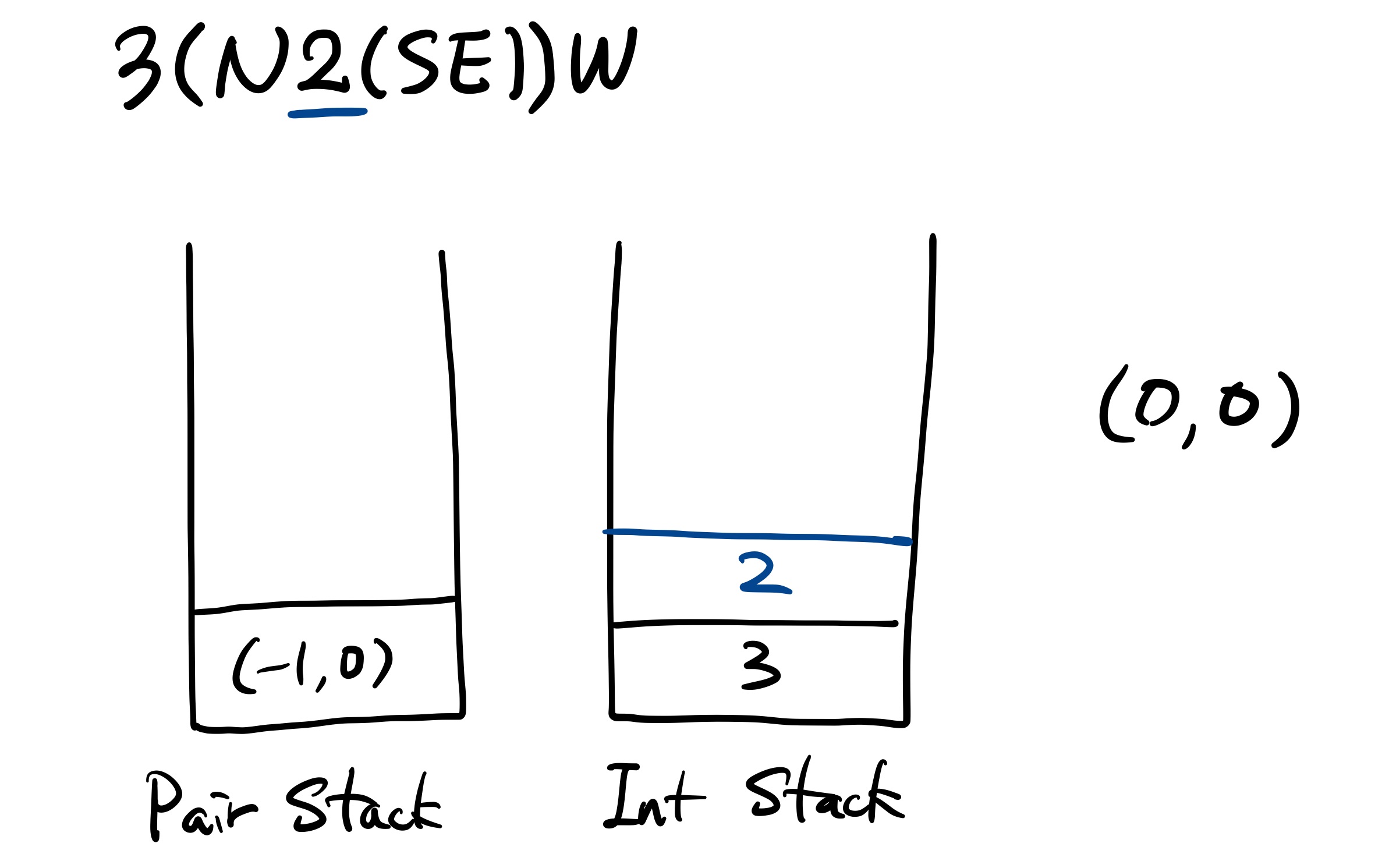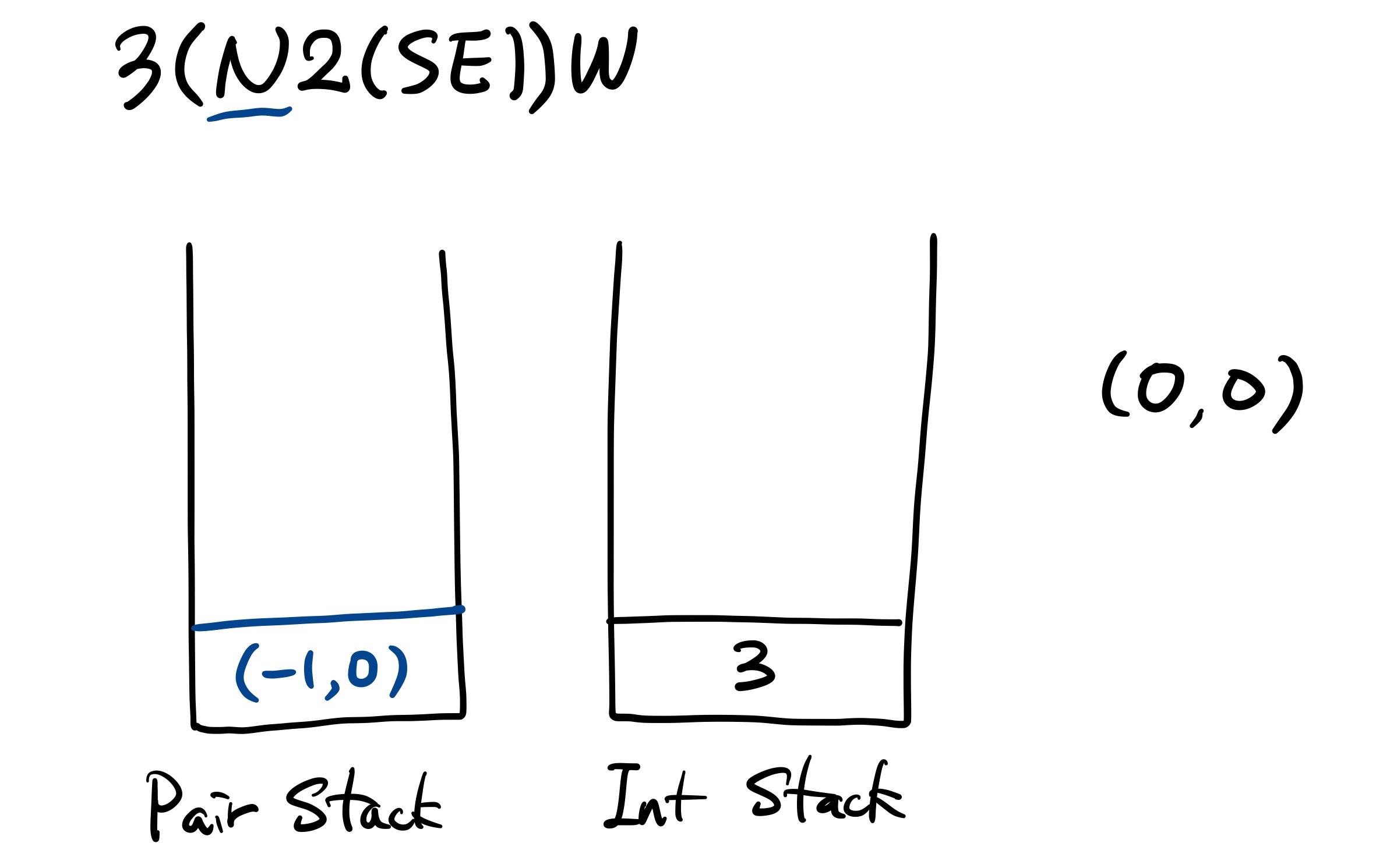 "3(N2(SE))W"라는 예제를 가지고 설명 해 보려고 한다. 먼저 숫자인 경우는 숫자 스택에 넣어준다.