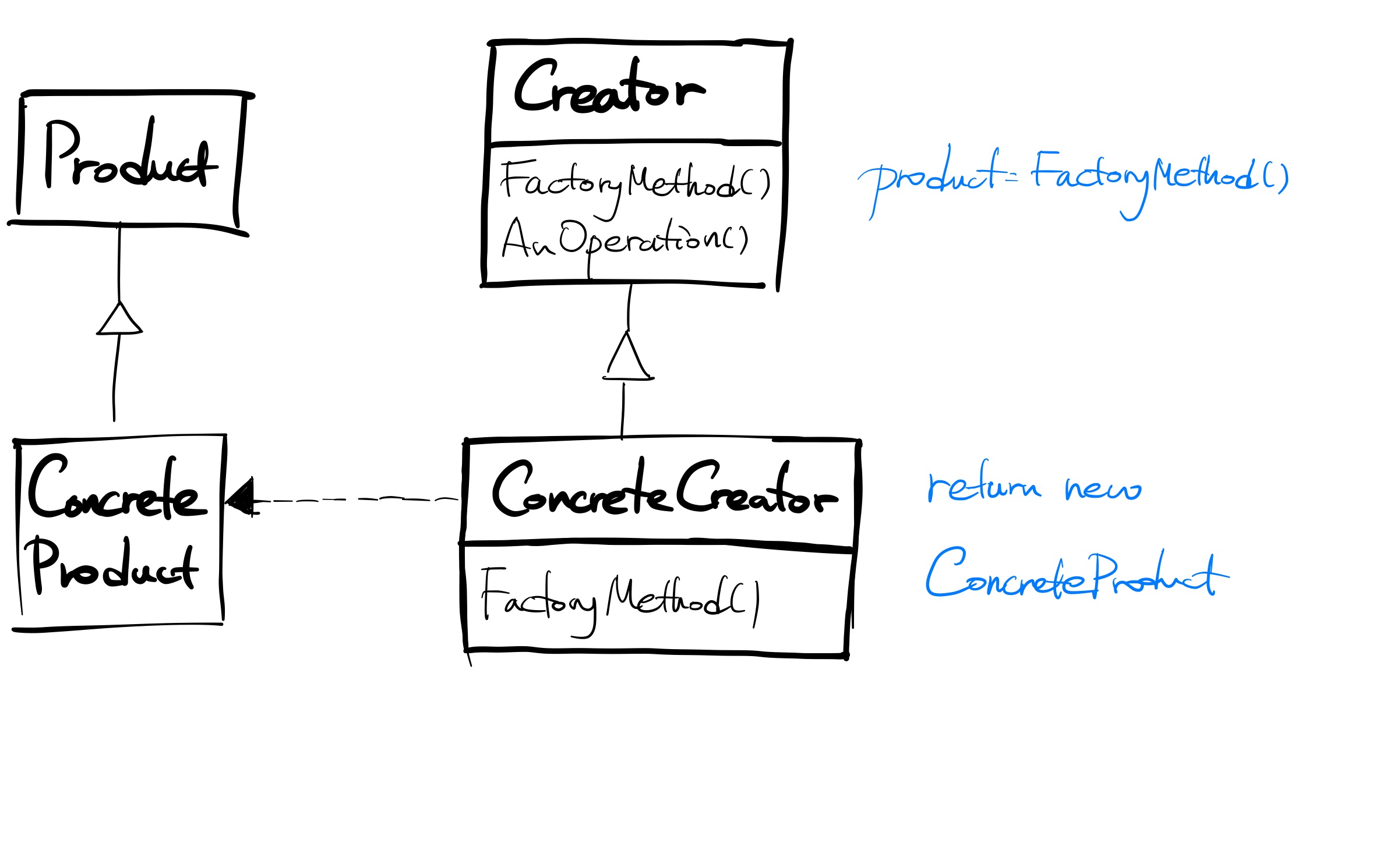 - 응용프로그램은 Product 클래스에 정의된 인터페이스와만 동작하도록 코드가 만들어지기 때문에, 사용자가 정의한 어떤 ConcreteProduct 클래스와도 동작할 수 있게 된다.