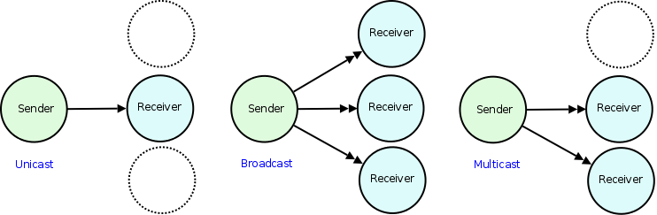 통신 방식에는 Broadcast 이외에도, Unicast와 Multicast 방식이 있는데 간단하게 차이를 설명하면 다음과 같다.