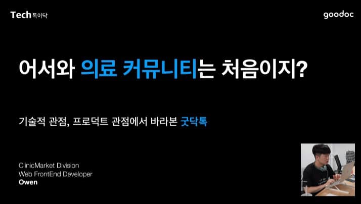 면접을 계속해서 보는 것에 지칠 때 즈음 6월 초 최종 오퍼를 현재 다니는 굿닥에서 받게 되었고 6월 22일 입사를 하게 되었다. 지금 6개월째 다니고 있고 정말 만족한다. 좋은 사람들과 함께 일을 하면서 많이 성장한다는 느낌을 매일매일 받는다. 나는 병원의 진료,시술 이벤트를 유저들이 신청할 수 있는 플랫폼을 담당하는 팀에 웹 프론트엔드 개발자로 들어가게 되었다. 입사 당시 프론트엔드 개발자는 나 포함 4명이었는데 그 사이 이런저런 변화가 많았고 현재는 프론트엔드를 하시는 분이 총 7명 정도로 늘어났다 ㅋㅋ