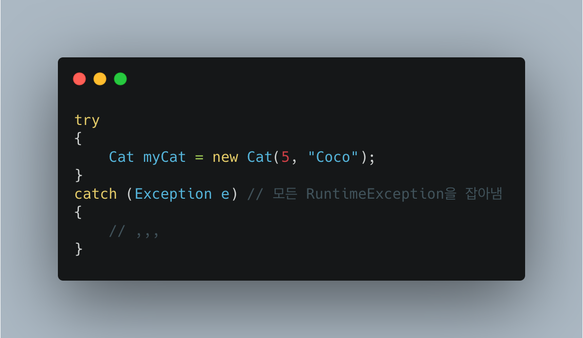 자바도 요즘은 아래와 같이 catch 블록에서 한 번에 예외를 처리하는 식으로 흐름이 바뀌고 있다.