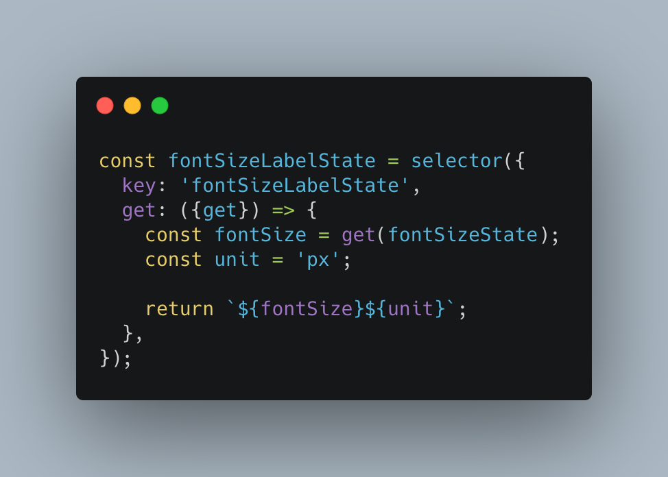 아래는 동기적인(synchronous) 아톰과 선택자에 대한 예제 코드이다.