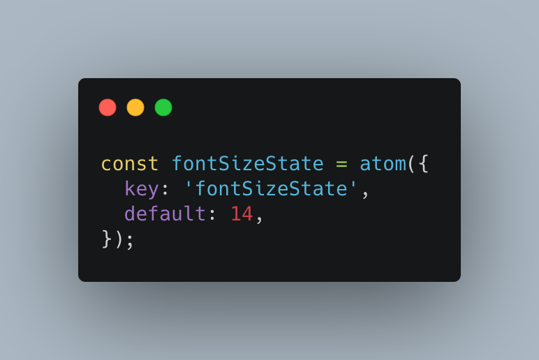 아톰은 유니크 키 값을 필요로 하는데, 이 키는 디버깅, 지속, 모든 아톰의 지도를 보기 위한 고급 API를 위해서 사용된다. 같은 키 값을 두 개의 아톰이 같이 들고 있으면 에러가 발생하므로 유의해야 한다. 컴포넌트에서 아톰을 읽고 쓰기 위해서는 useRecoilState라는 훅을 사용해야 한다. 리액트의 useState와 비슷하지만, 차이가 있다면 이제 상태는 컴포넌트 간에 공유가 가능하다.