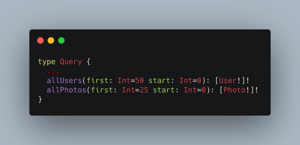 - [Int]!: 리스트 안의 정수 값은 null이 될 수 있으나, 리스트 자체는 null이 될 수 없다.