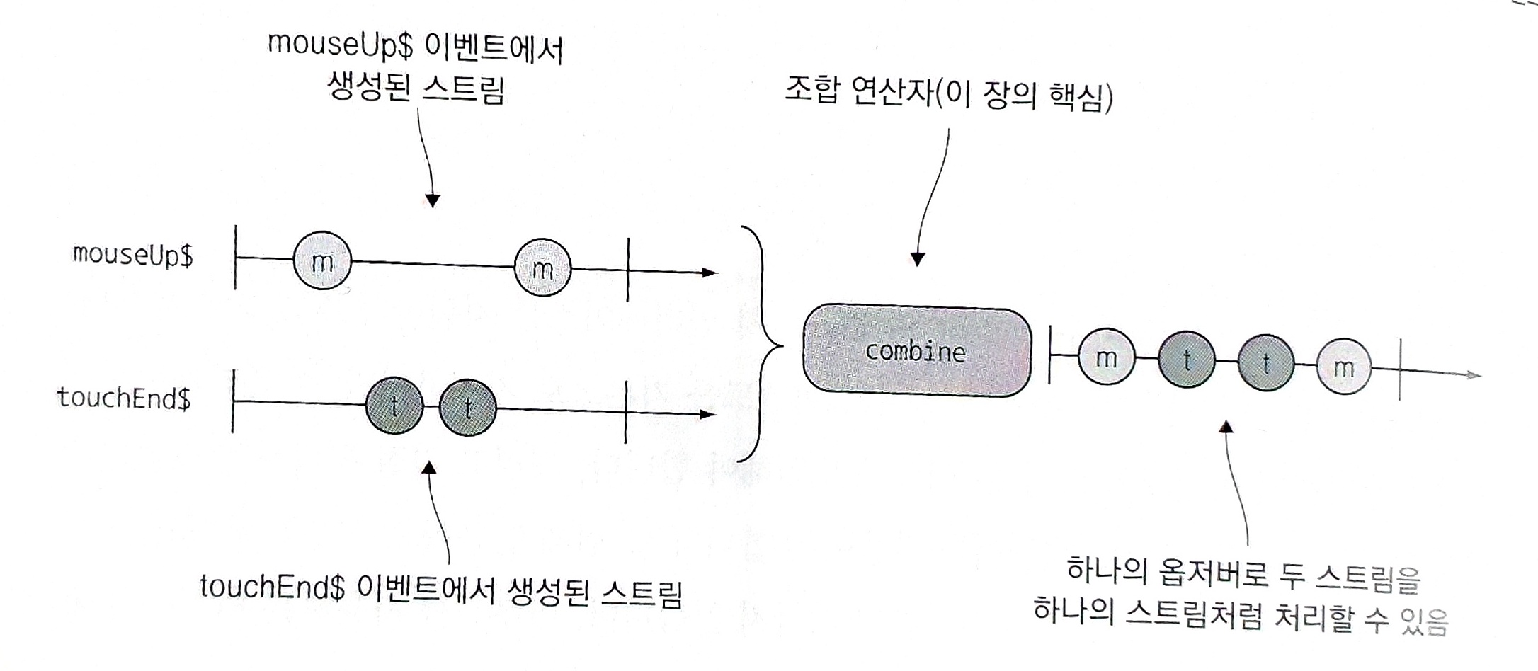mouseUp$.merge(touchEnd$).subscribe(/* 단일 옵저버가 두 이벤트 중 하나를 소비함 */);
