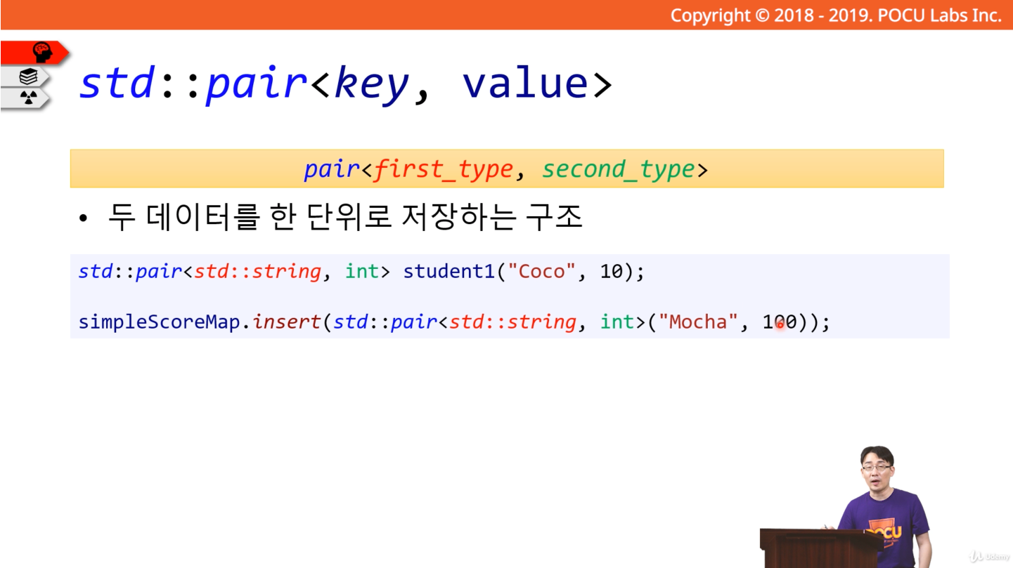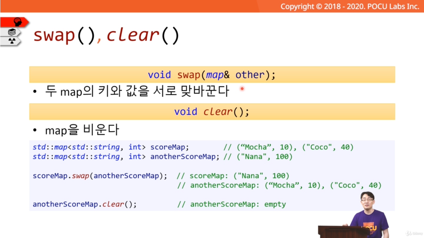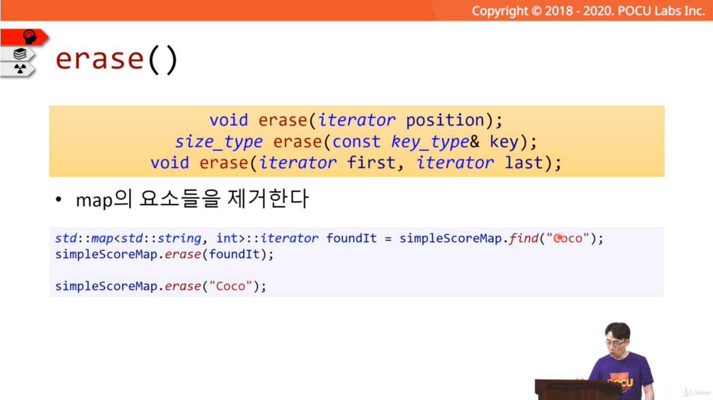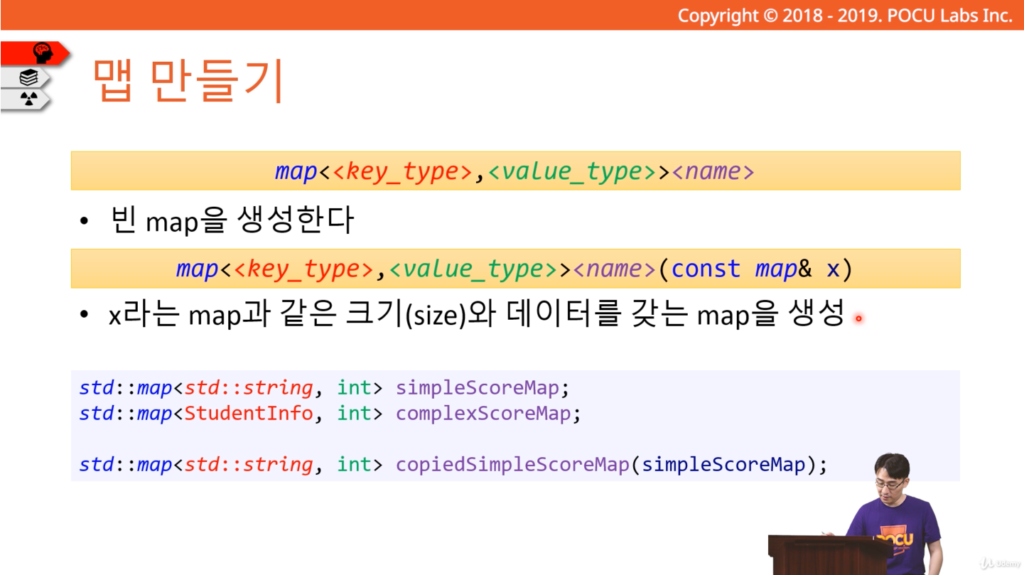 이번 포스팅에서는 STL의 맵(Map)에 대해서 정리해 보려고 한다. 첨부한 이미지는 포큐 아카데미의 C++ 강의 내용 화면이다.