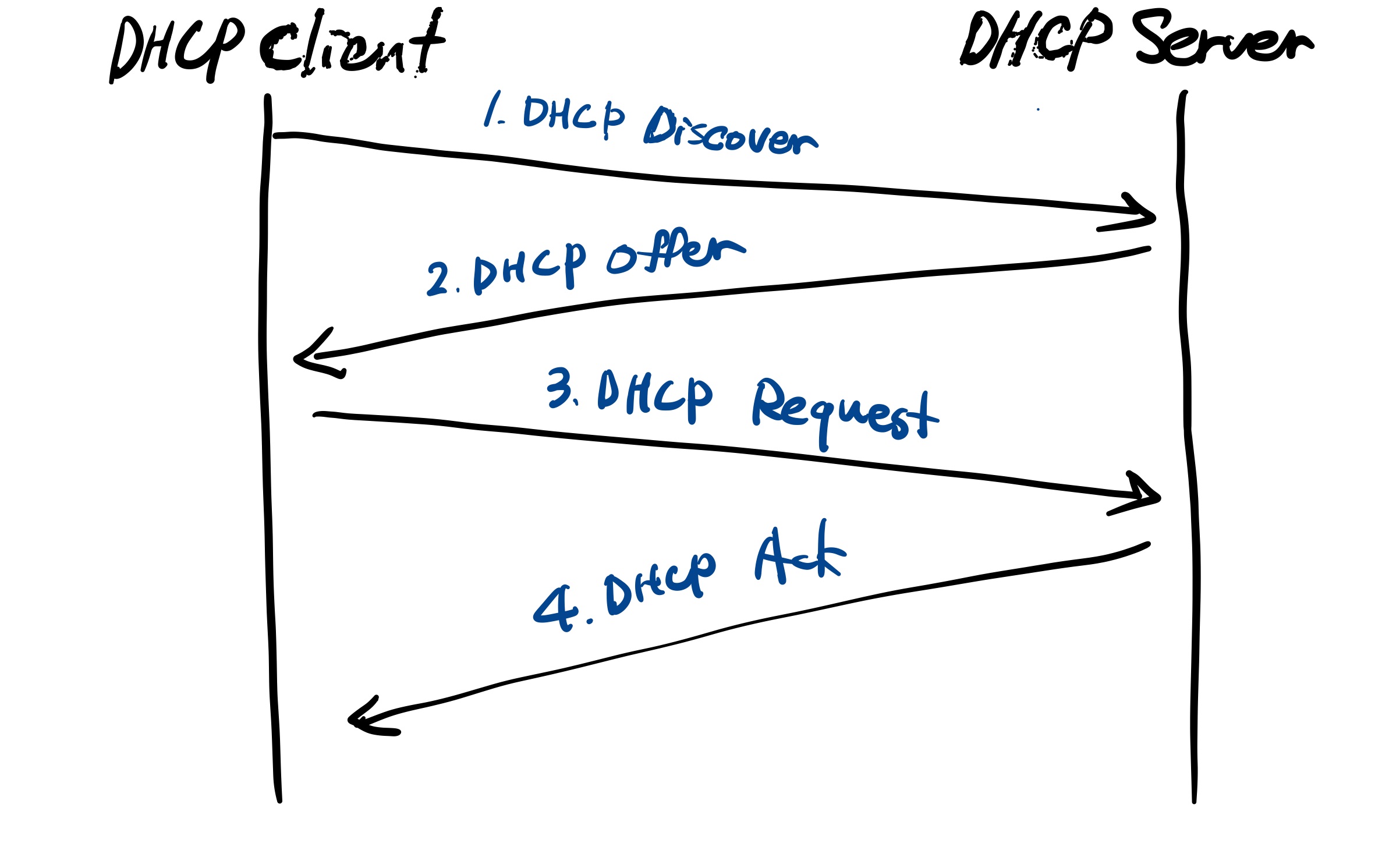 단말(DHCP 클라이언트)이 DHCP 서버로부터 IP 주소를 할당 받는 절차는 다음과 같다.