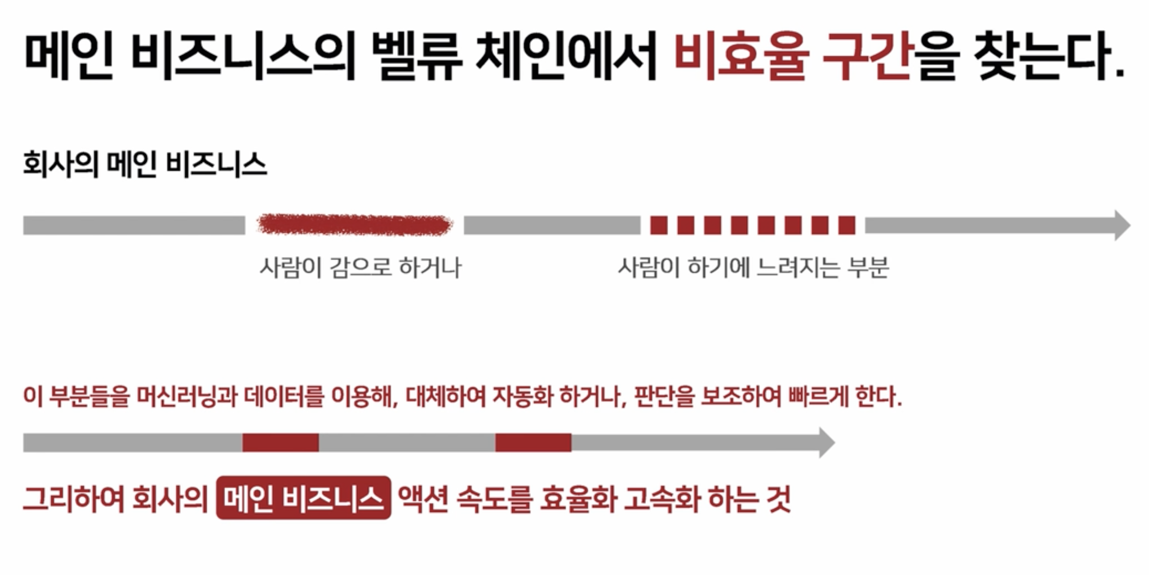 메인 비즈니스의 벨류 체인에서 비효율 구간을 찾는다.