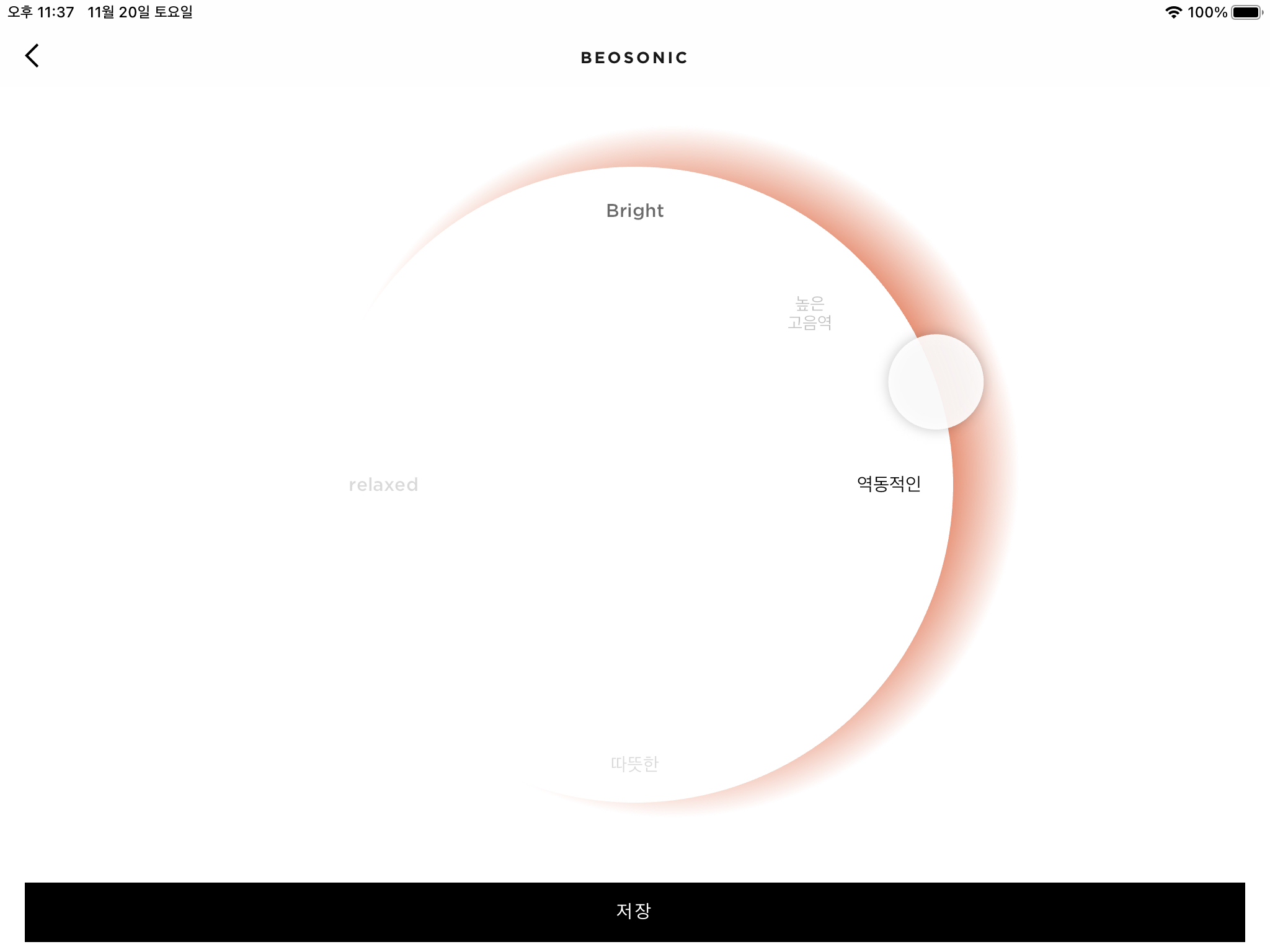 이런 식으로 Bang & Olufsen 앱을 지원해서 여기에서 음향 설정을 자유롭게 바꿀 수 있다. 나는 개인적으로 안드로이드 폰에서 이 앱이 나의 기기를 잘 인식하지 못해서 아이패드 앱으로 연결해서 사용하고 있다.