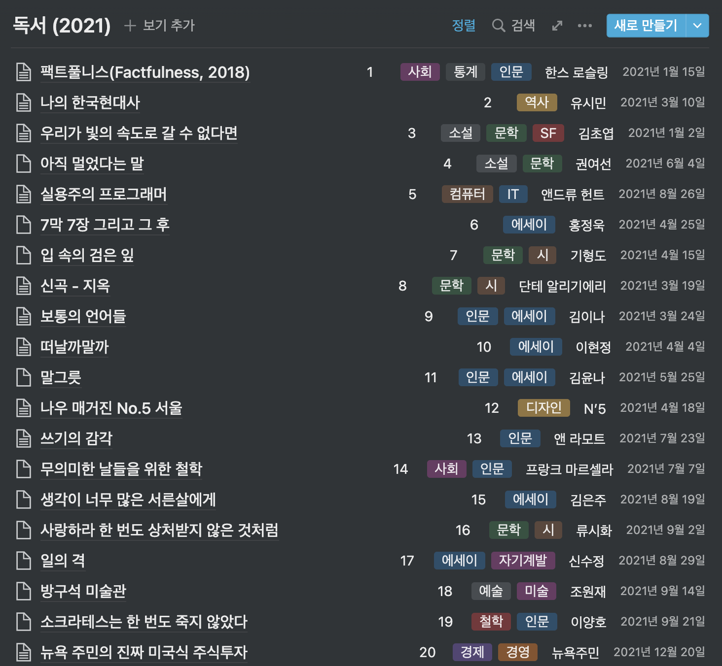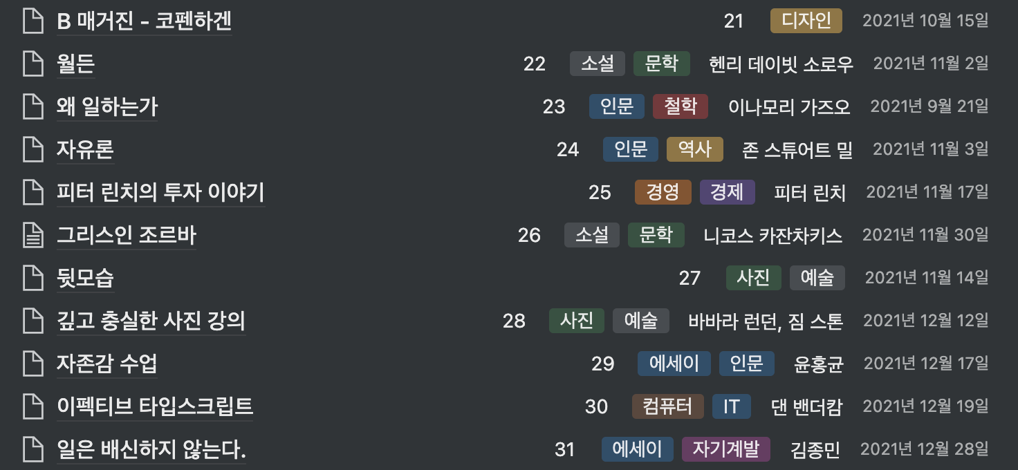 두 독서모임을 통해 올 해 읽었던 책 목록은 다음과 같다.