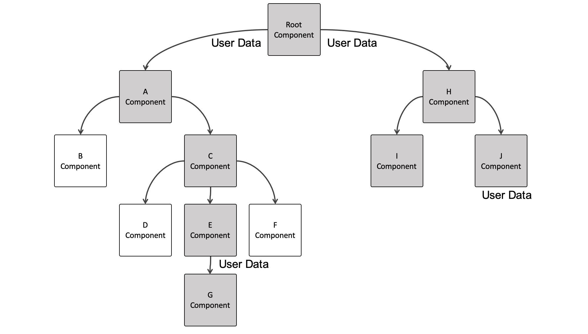 만약 여기서 G Component에서 데이터를 추가했고 그 값을 J Component에서 사용한다면 어떻게 해야 할까? G → E → C → A → Root → H → J 이렇게 가야 할 것이다. 여기에서 컴포넌트 구조가 더 깊어진다면..? 그러면 데이터는 더 먼 길을 돌아서 하나의 컴포넌트에서 다른 컴포넌트로 이동을 하게 되며 이는 성능 저하 이슈를 일으킬 수 있다.