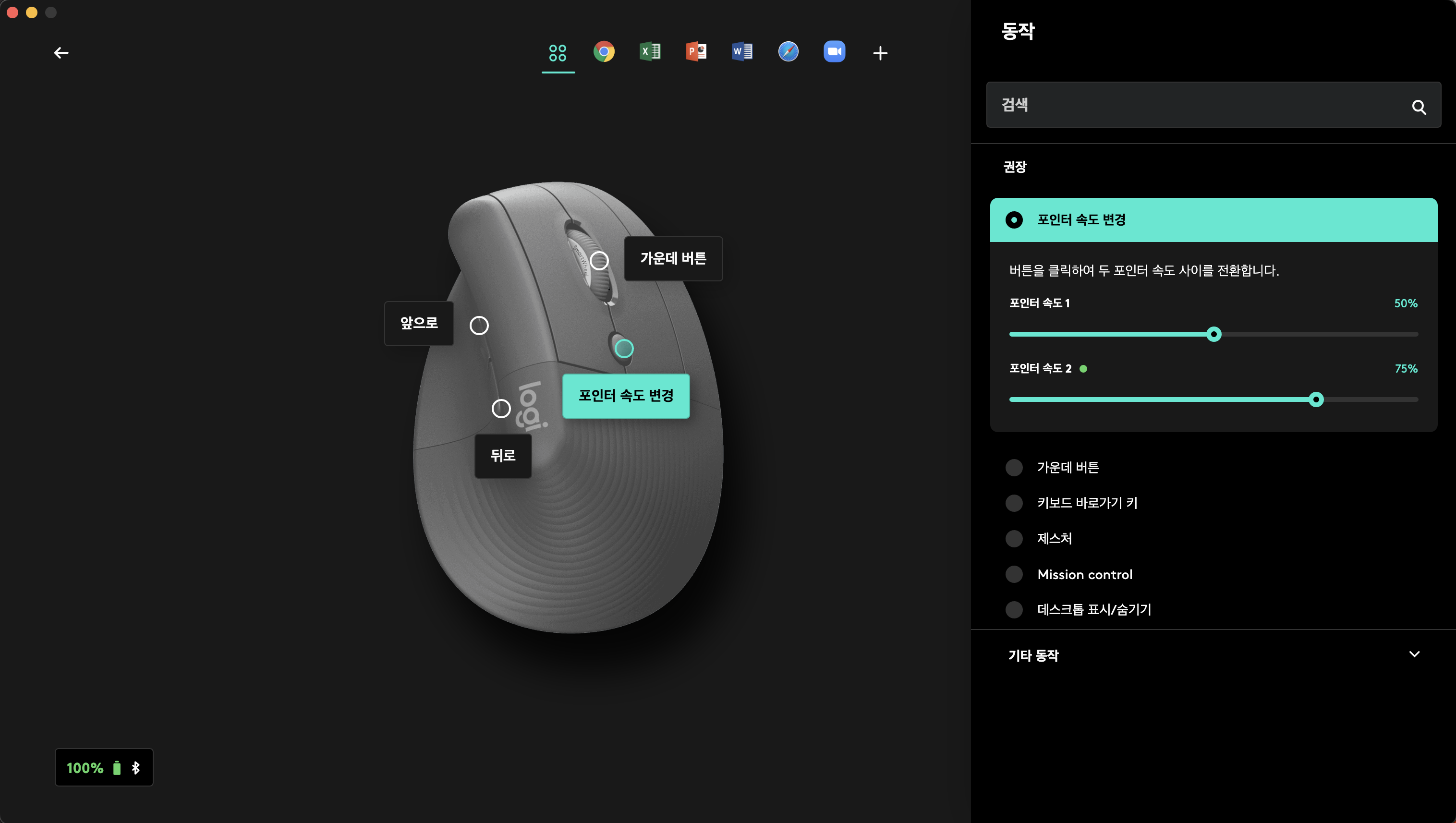 그리고 공식 지원 홈페이지 를 가보면 로지텍 데스크탑 앱도 있다. Logi Option+ 라는 앱인데 여기에 기기를 등록하고 커스터 마이즈 해서 쓸 수 있다. 이 데스크탑 앱을 처음 써봤는데 되게 깔끔하게 잘 만들어 놓았다는 느낌이 들었다.