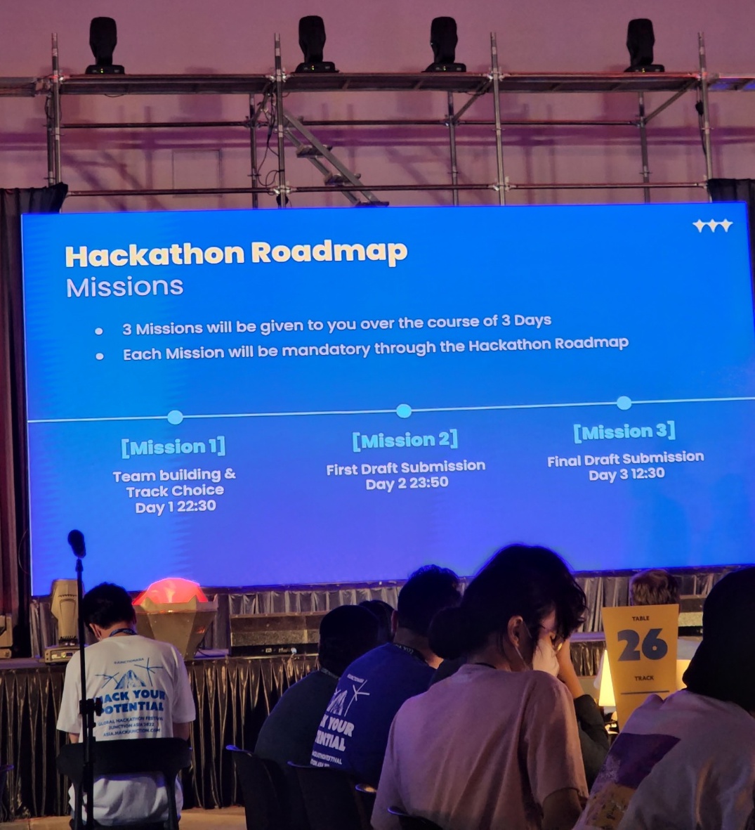 아무래도 접수 시간이 오래 걸려서 시작 시간이 조금 딜레이가 되었고, 7시 반쯤 공식적인 오프닝 세레모니가 시작이 되었다. 시작되고 나서 각각의 트랙별로 주제를 소개하는 시간이 주어졌다. AWS, ZEP, Chainapsis, Microsoft 이렇게 4개의 스폰서가 각각 트랙에 맞는 주제를 제시했고 10:30까지 각 팀은 팀 명과 트랙을 선정해야 했다.