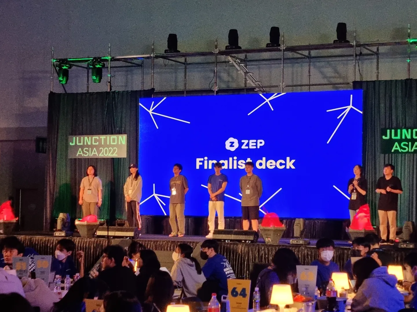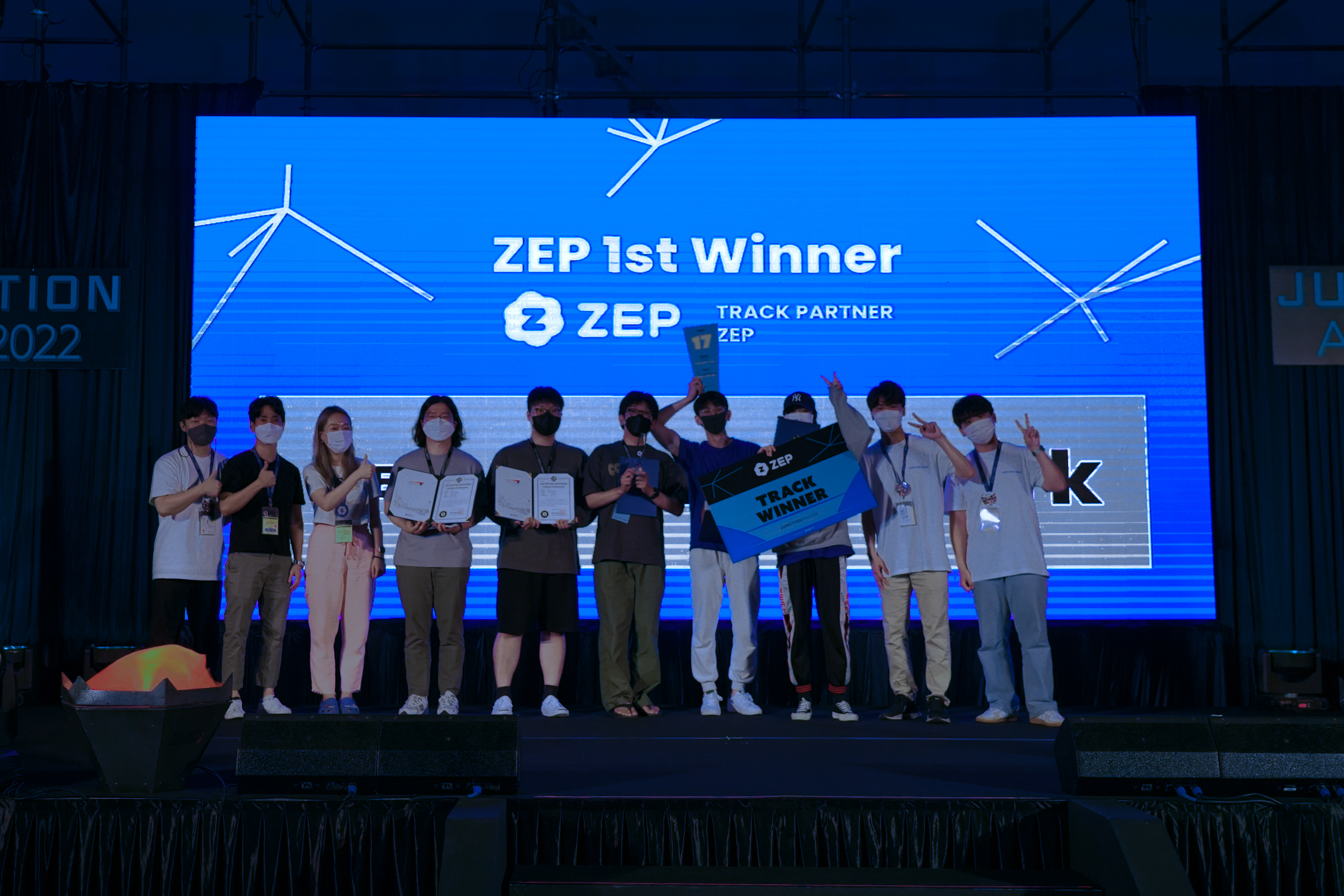그런데.. 갑자기 ZEP 심사위원 한 분이 오시더니 데모를 한 번 짧게 더 보여달라고 하셨다. 안 보신 분들이 있다고.. 이 때 우리팀에 피곤해서 자는 분들도 있었는데 깨워서 얼른 데모를 하고 혹시 몰라서 발표 준비를 했다. 그리고 나서 놀랍게도 관계자로부터 ZEP 트랙 1등으로 선정이 되었으니 Finalist 발표를 준비하라는 안내를 들었다!!