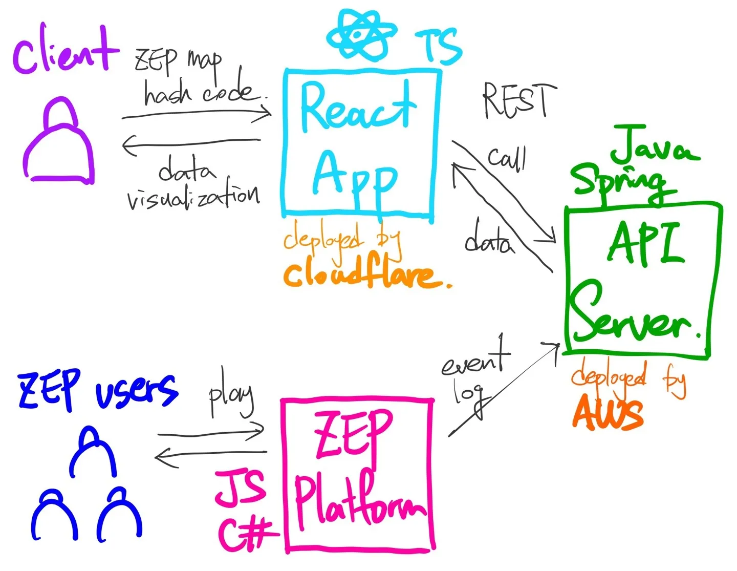 - 우리 팀 TonightSpark는 ZEP 트랙을 설정해서 ZEP 메타버스 지도에서 유저들의 행동을 이벤트 기반으로 데이터를 분석해서 보여주는 데이터 시각화 대시보드 서비스인 ZEP.SIGHT를 만들었다.