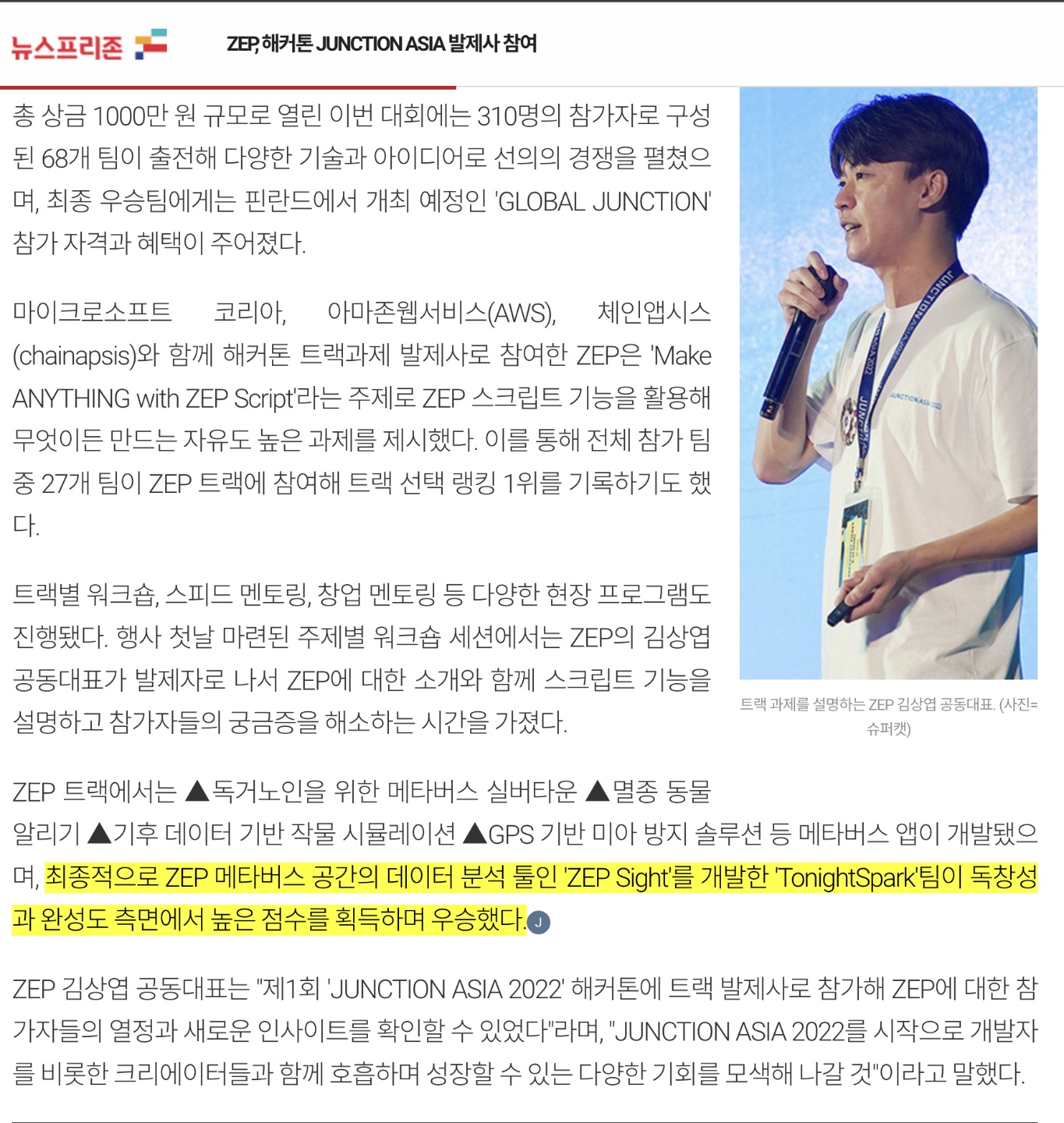 + 해커톤 이후 뉴스 기사에 우리 팀에 대한 소개가 짧게 나왔다 ㅎㅎ