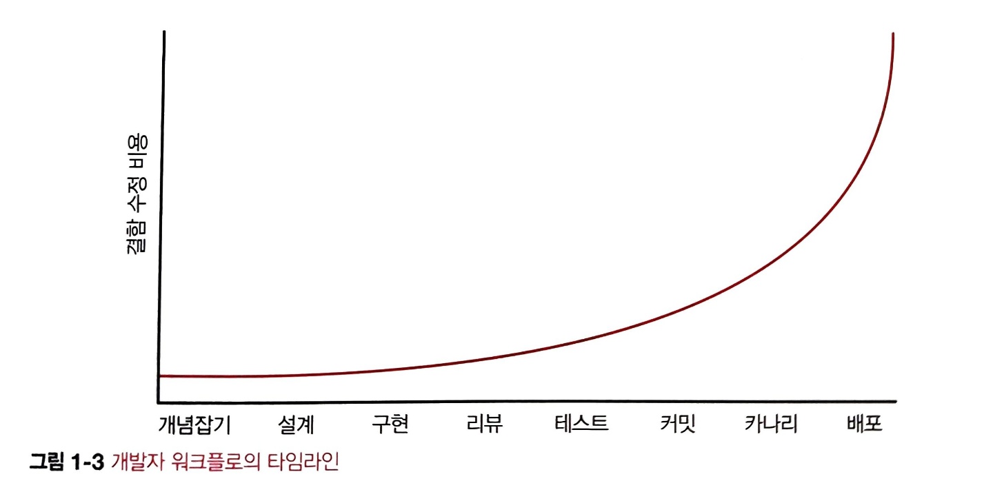 - 타임라인에서 문제 발견 시점을 왼쪽으로 이동시킬수록 수정 비용이 줄어든다.