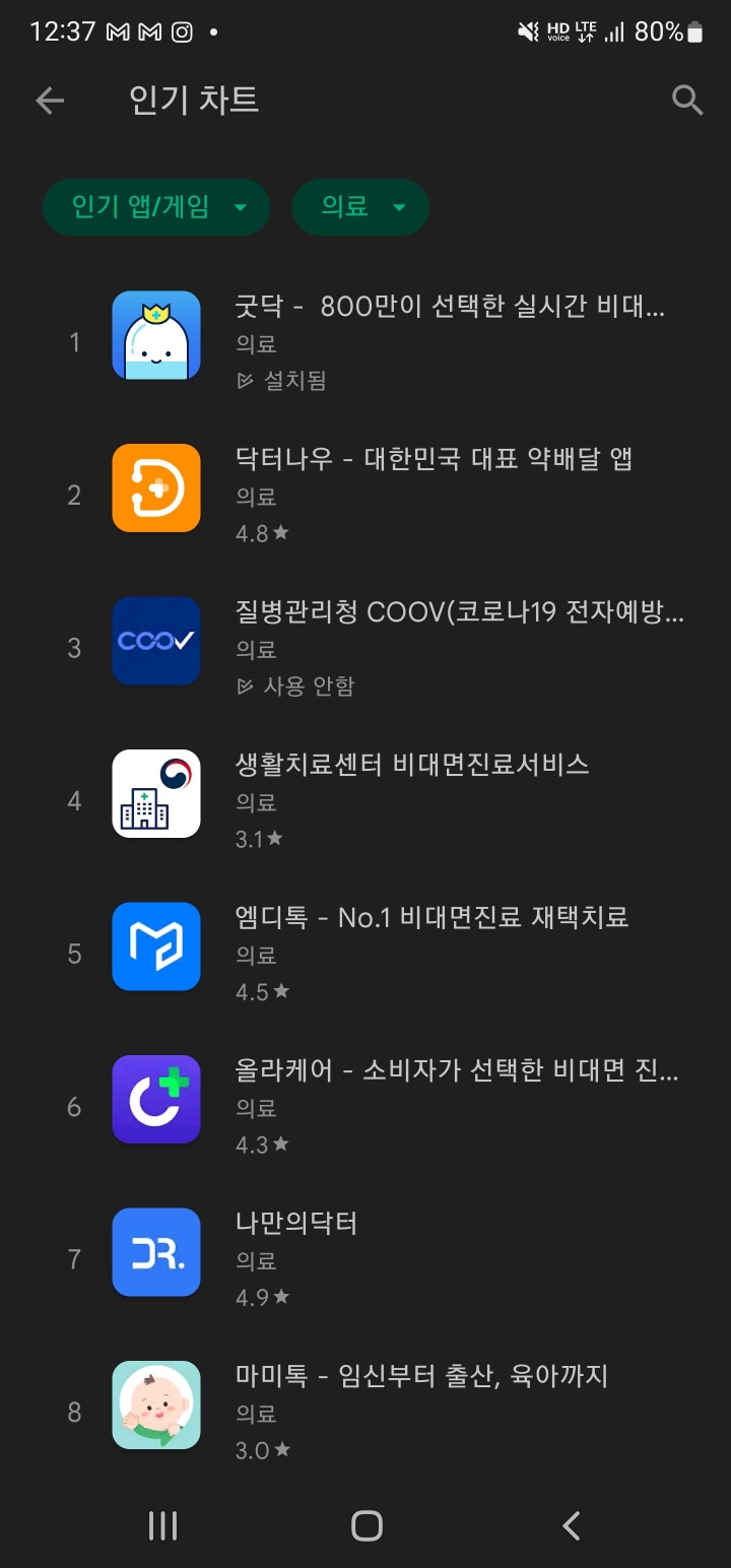 안드로이드 의료 카테고리 1위! (앱스토어는 2위)